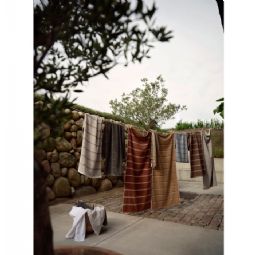 Den høje bomuldskvalitet giver en god absorberingsevne og er behagelig at tørre sig med efter badet. Designet er inspireret af de rene linjer fra klassiske saunaer og kombinerer funktionalitet med et moderne grafisk udtryk. Håndklædet er OEKO-TEX® certificeret, hvilket er din garanti for, at produktet er fri for skadelige kemikalier og sikkert at bruge mod huden.
