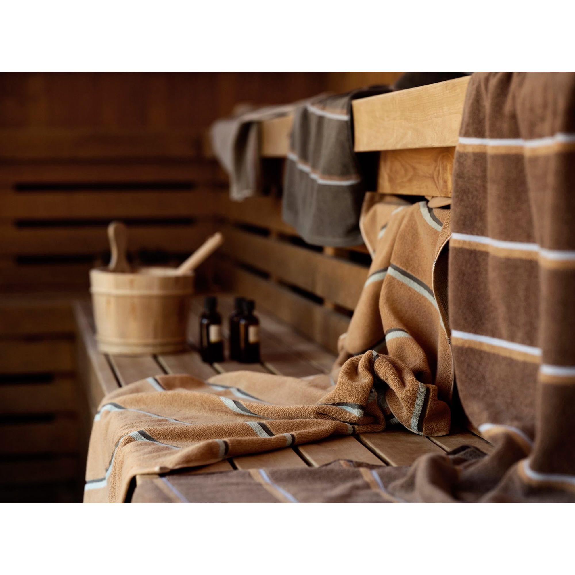 Håndklæde - 100% bomuld - Badehåndklæde 70x140 cm - Zone Denmark Sauna - Stribet Taupe