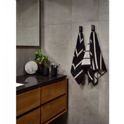 Den høje bomuldskvalitet giver en god absorberingsevne og er behagelig at tørre sig med efter badet. Designet er inspireret af de rene linjer fra klassiske saunaer og kombinerer funktionalitet med et moderne grafisk udtryk. Håndklædet er OEKO-TEX® certificeret, hvilket er din garanti for, at produktet er fri for skadelige kemikalier og sikkert at bruge mod huden.