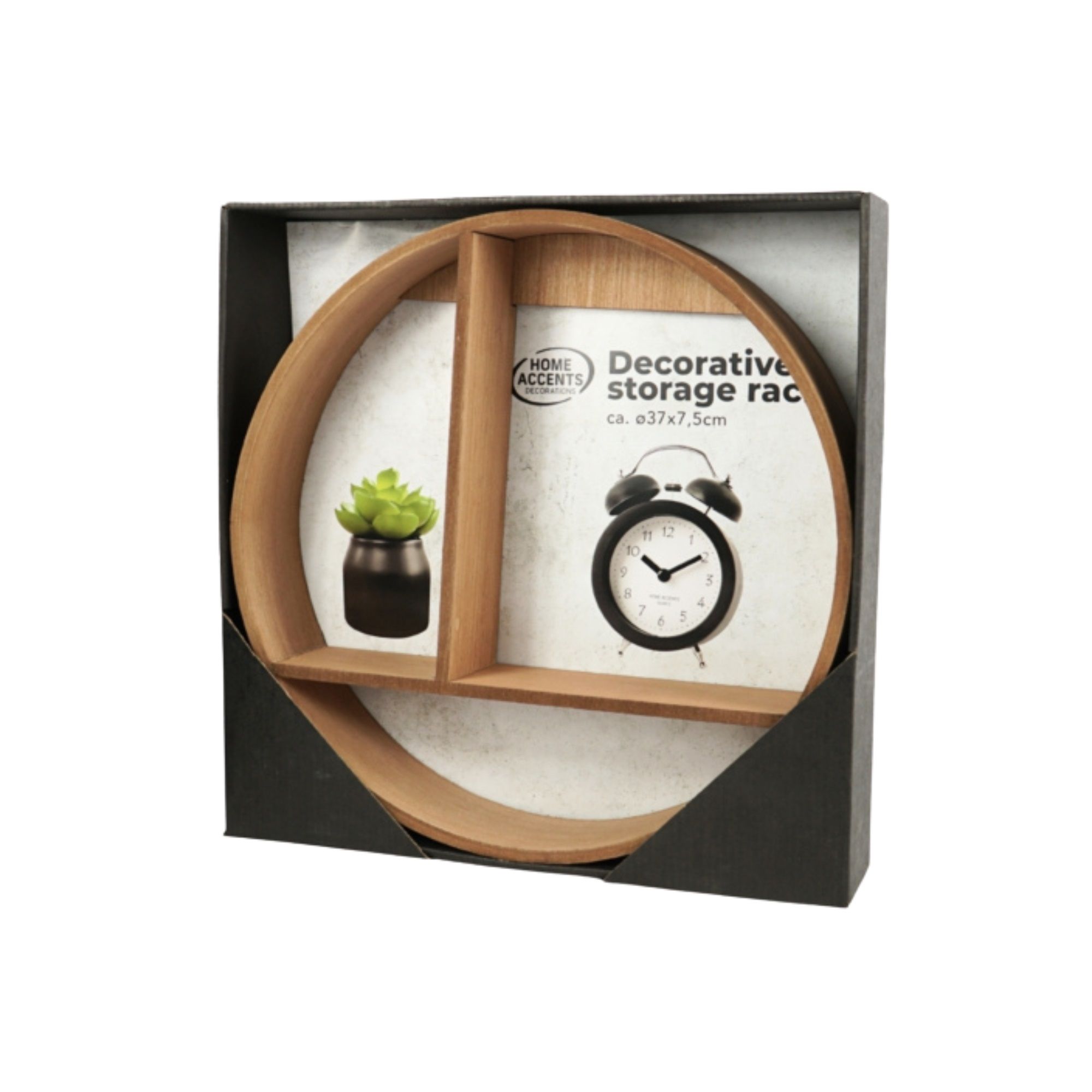 Med en størrelse på Ø37 cm og en dybde på 7,5 cm er hylden ideel til små dekorationer, planter, billeder eller andre personlige elementer, der fortjener en flot plads på væggen.