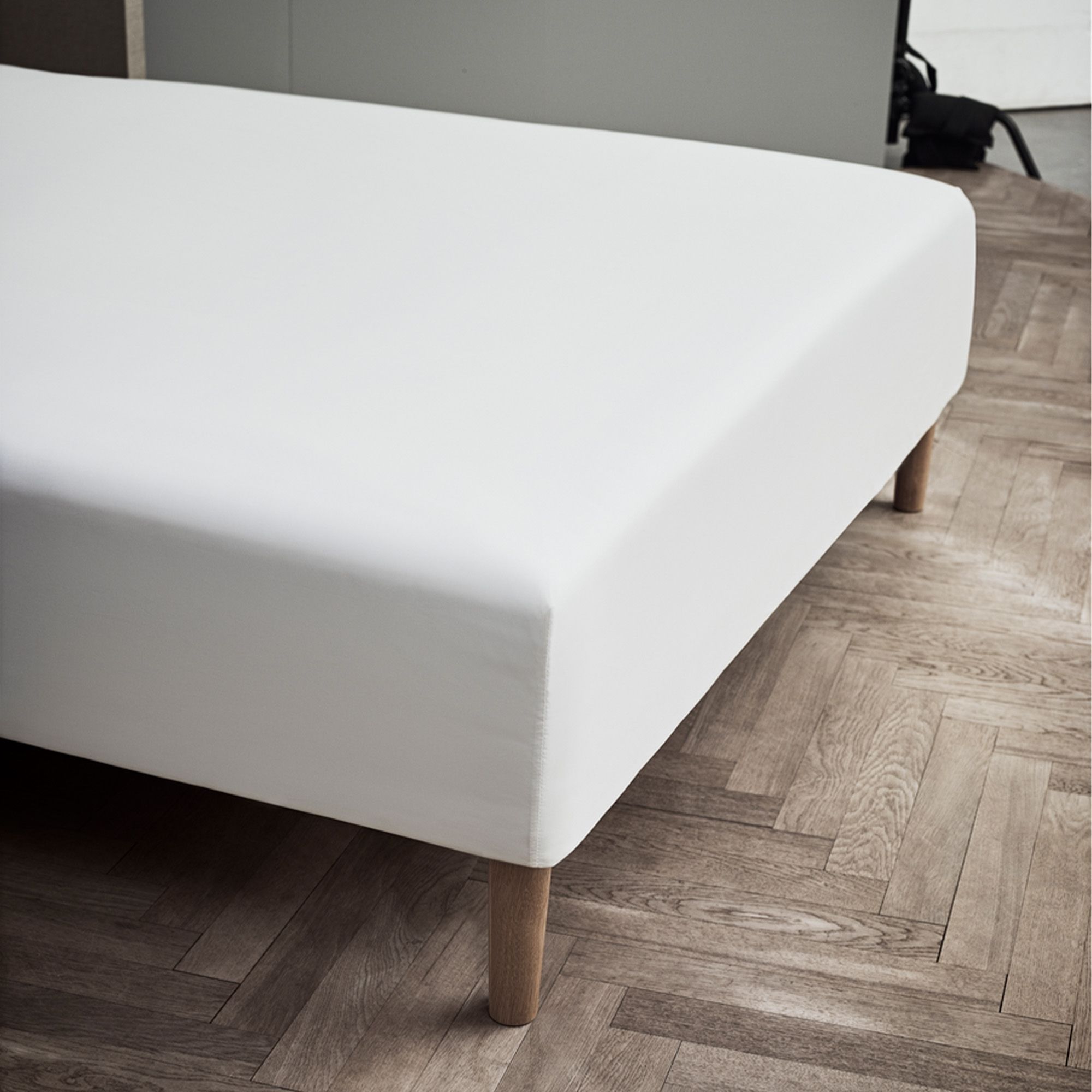 Den klassiske hvide farve skaber et rent og stilfuldt udtryk i soveværelset og passer perfekt sammen med alle typer sengetøj. Percalevævningen består af fine, tætvævede bomuldstråde, som gør lagnet slidstærkt og giver en frisk, kølig fornemmelse mod huden.
