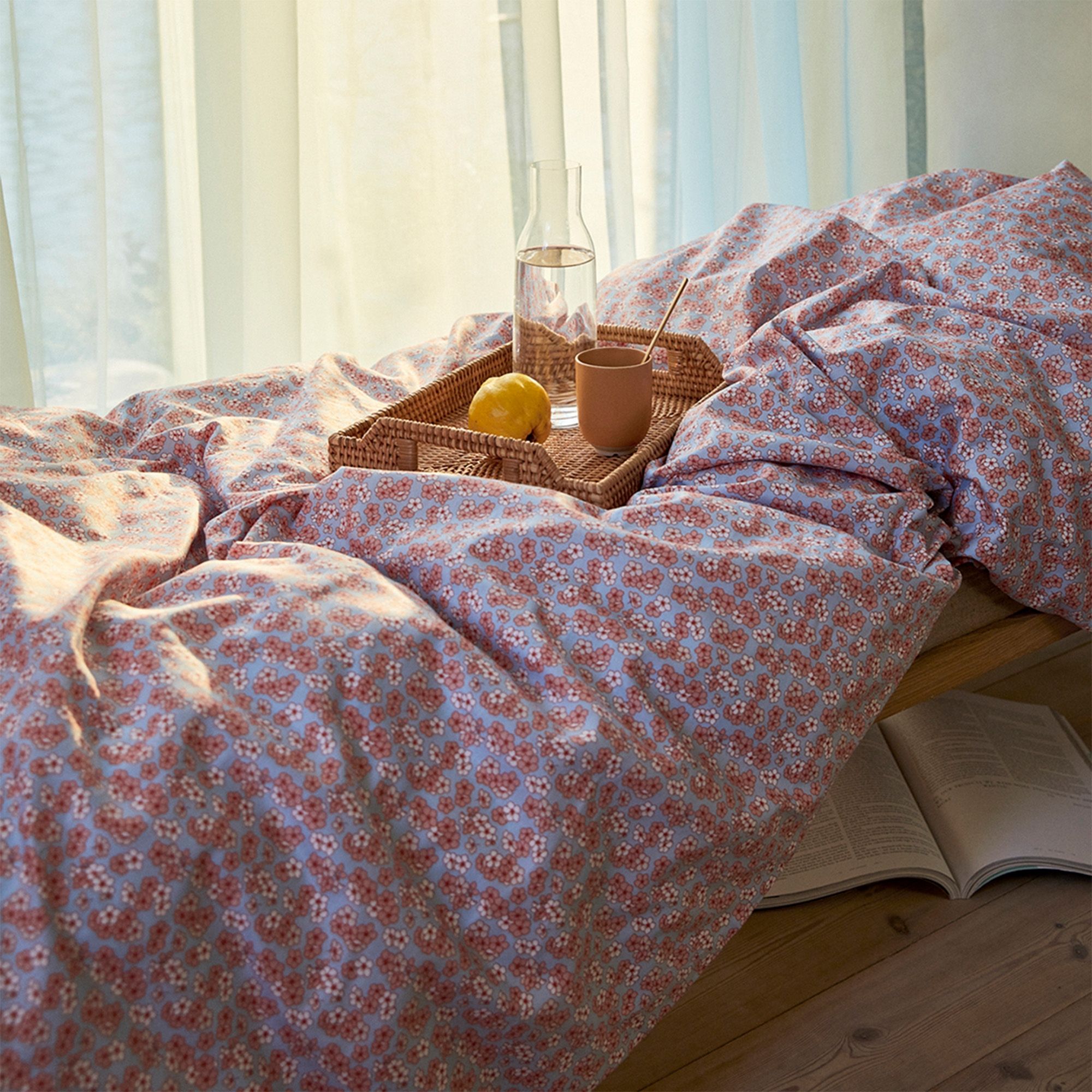 Dobbelt sengetøj 200x220 cm - JUNA Pleasantly blå med blomster