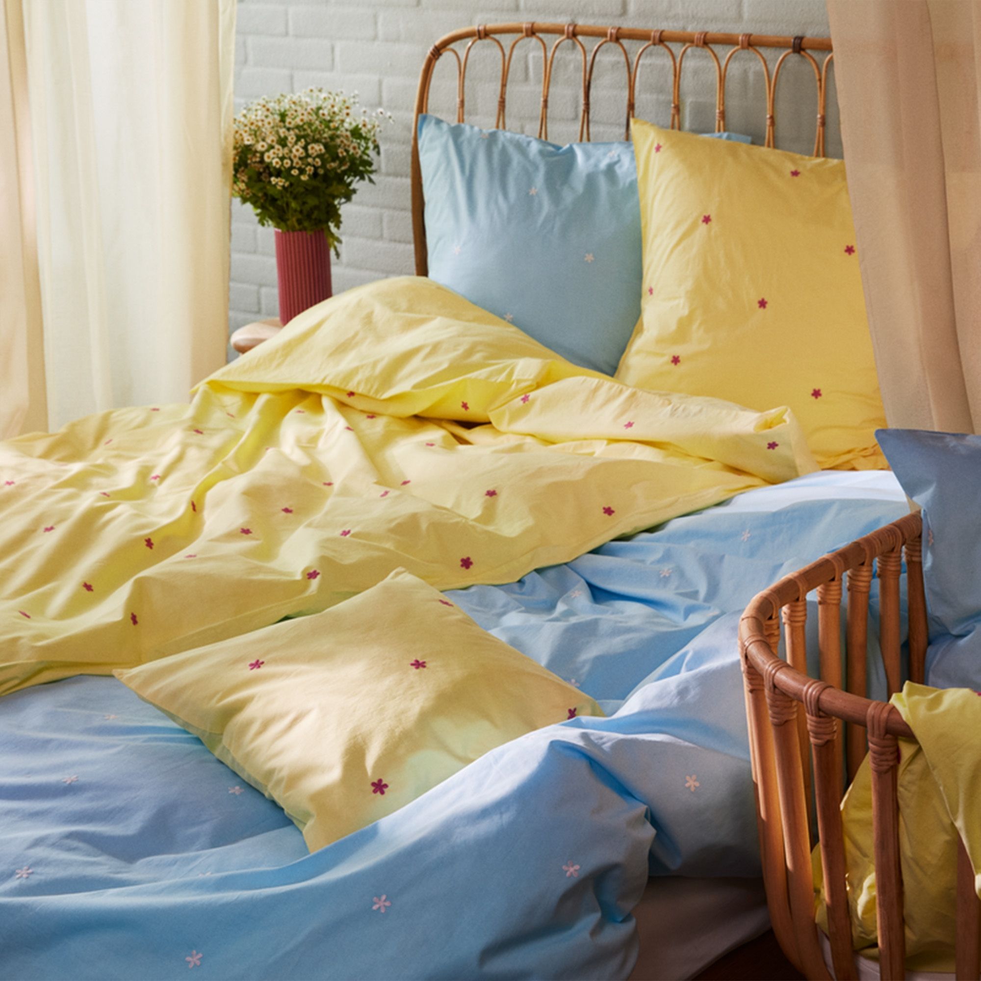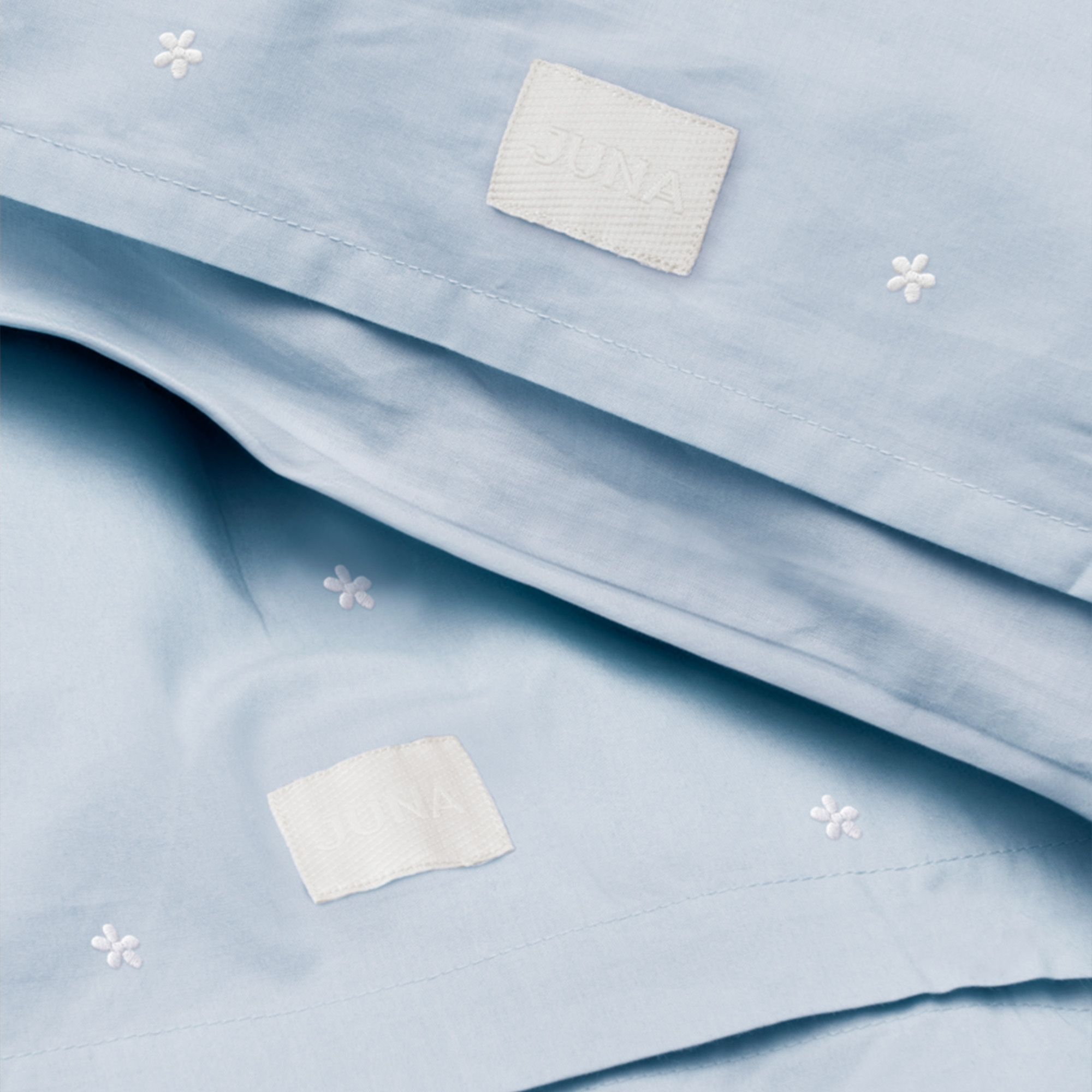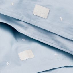 Daisy dobbeltsengetøj i økologisk bomuld - blå med broderede blomster