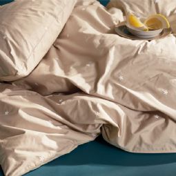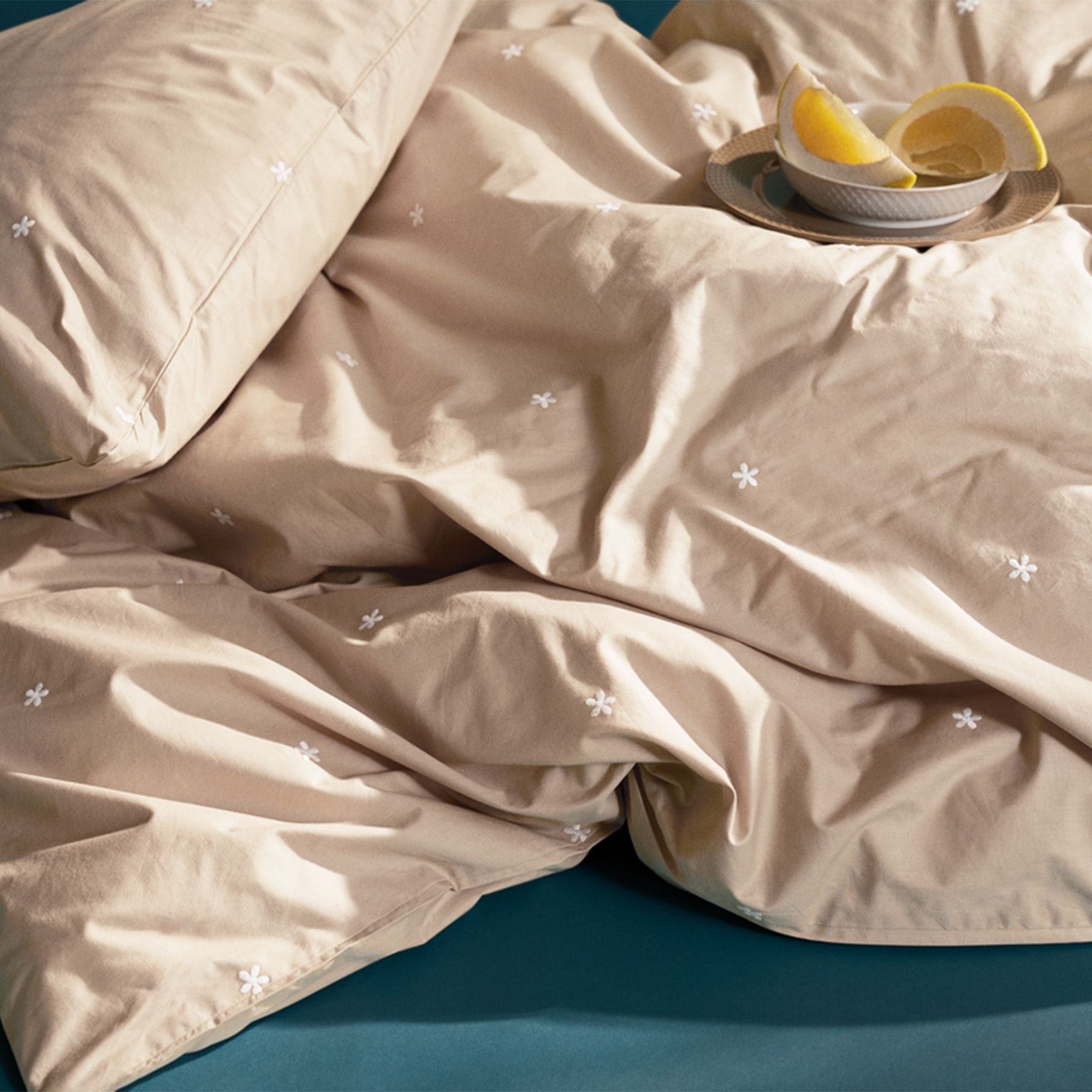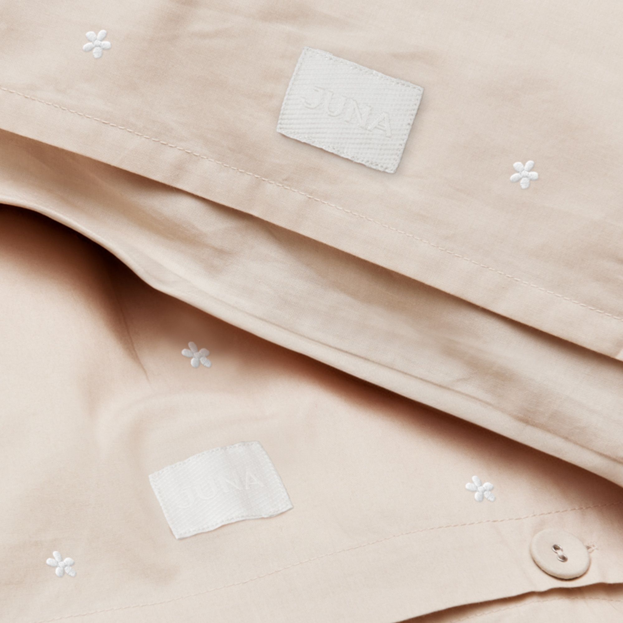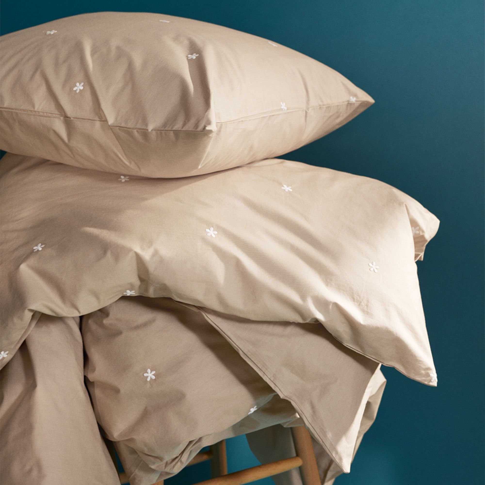 Daisy dobbeltsengetøj i økologisk bomuld - sand med broderede blomster