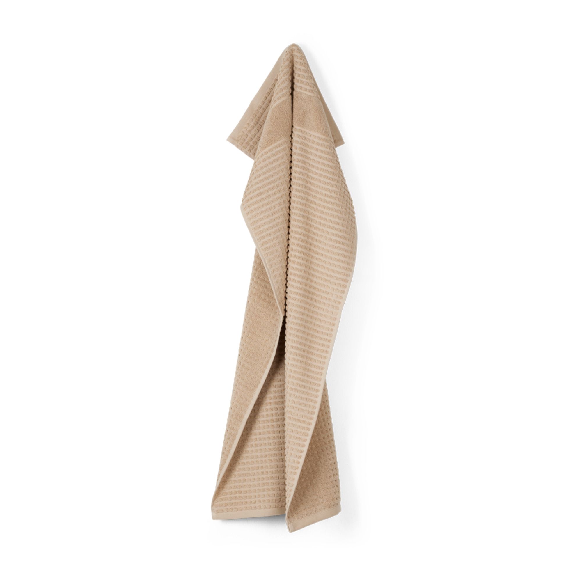 Forkæl dig selv med luksus i hverdagen med dette smukke Check håndklæde fra JUNA. Den fine sandfarve og det diskrete firkantede mønster skaber et roligt og stilrent udtryk, der passer perfekt ind i det moderne badeværelse.