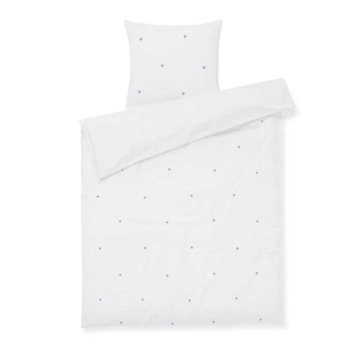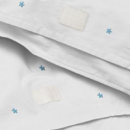 Skab en tryg nattesøvn med dette smukke babysengetøj fra JUNA Daisy serien. Det klassiske hvide design med broderede blå blomster giver et tidløst og roligt udtryk. Sengesættet er fremstillet i 100% økologisk bomuld i en eksklusiv percalevævning, som sikrer en blød, glat og åndbar kvalitet - perfekt til babyens sarte hud.