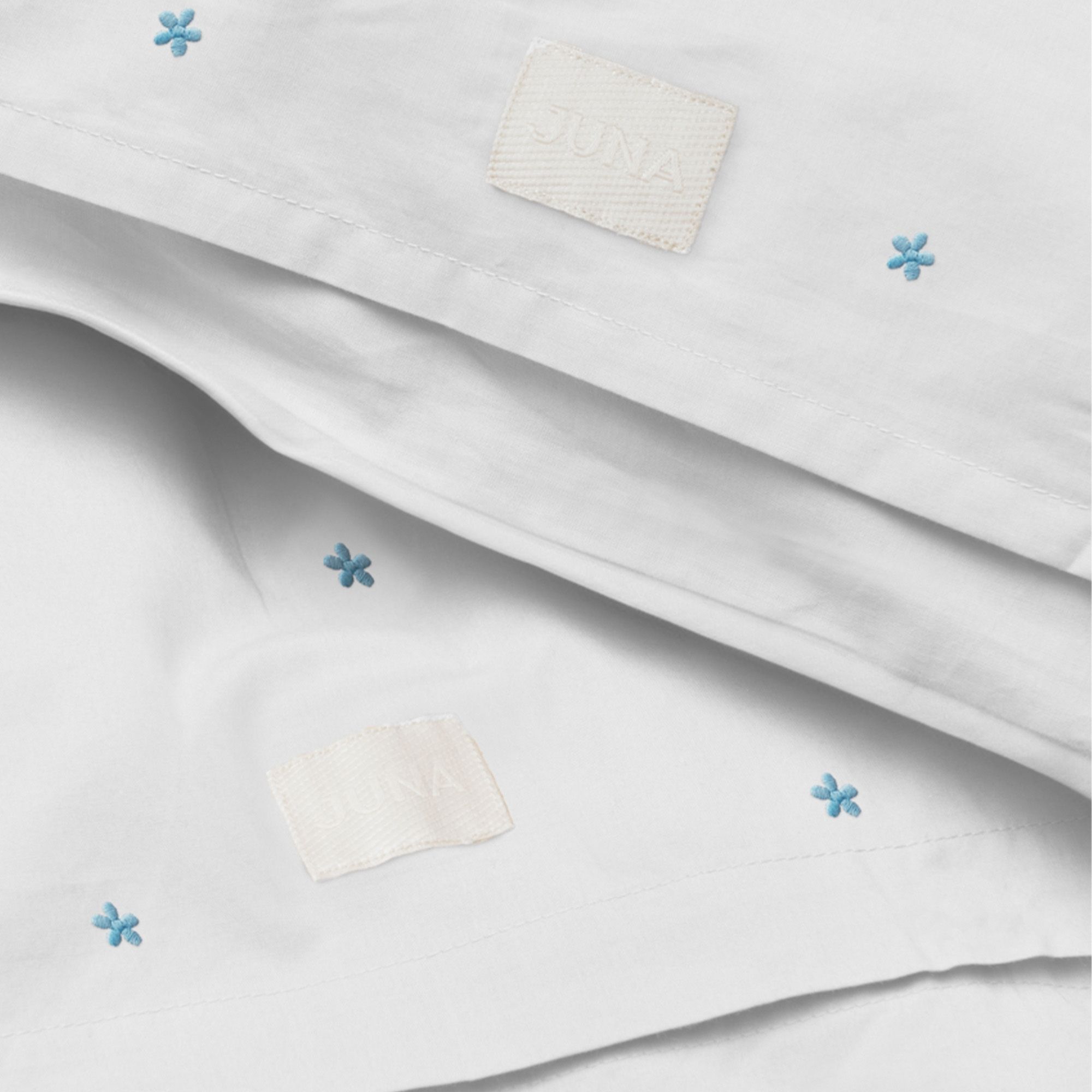 JUNA sengetøj - 100% økologisk bomuld - Daisy baby sengetøj 70x100 cm - Hvid med broderede blomster