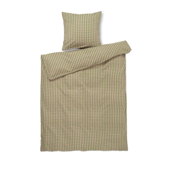 Det bløde bomuld kombineret med den krøllede struktur giver en unik følelse af luksus. Samtidig er sengetøjet praktisk i hverdagen, da det ikke kræver strygning og holder sit flotte udtryk vask efter vask. De fine tern i grøn giver et roligt og stilrent look, der passer ind i både moderne og klassiske soveværelser.