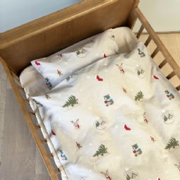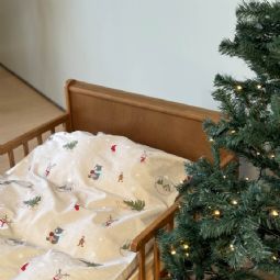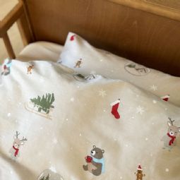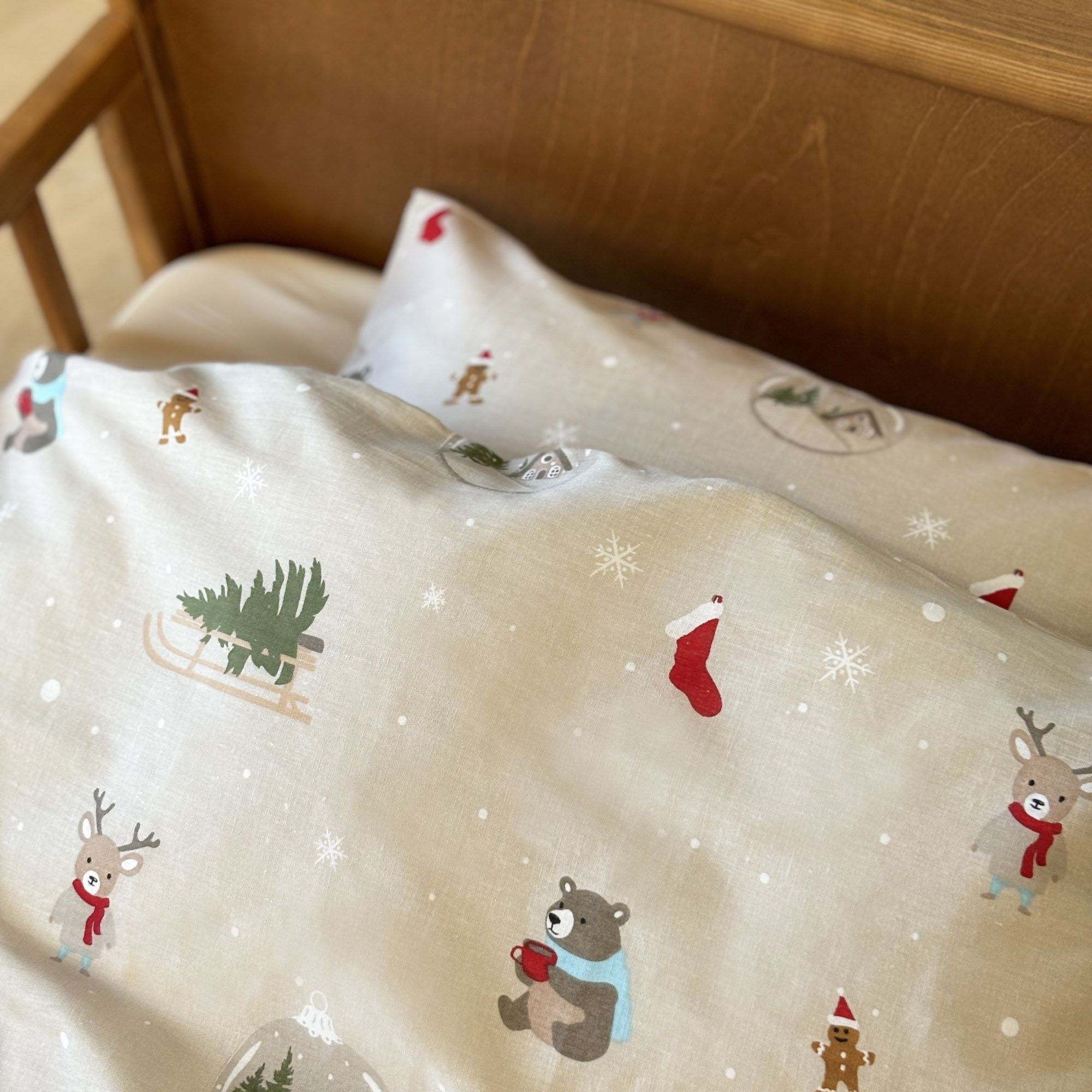 Blødt julesengetøj i 100% bomuld, med juleikoner. Produceret med lette og åndbare bomuldstråde som giver sengesættet en følelse af blødhed, der gør at dynen føles dejlig for dit barn at sove med. Balancen i naturlig egenskaber og komfort fra det bløde materiale, kombineret med det hyggelige juledesign, gør dette sæt til en sikker favorit hos dit barn.