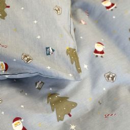 Blødt julesengetøj i 100% bomuld, med julemænd, juletræer og andre julemotiver. Produceret med lette og åndbare bomuldstråde som giver sengesættet en følelse af blødhed, der gør at dynen føles dejlig for dit barn at sove med. Balancen i naturlig egenskaber og komfort fra det bløde materiale, kombineret med det hyggelige juledesign, gør dette sæt til en sikker favorit hos dit barn.