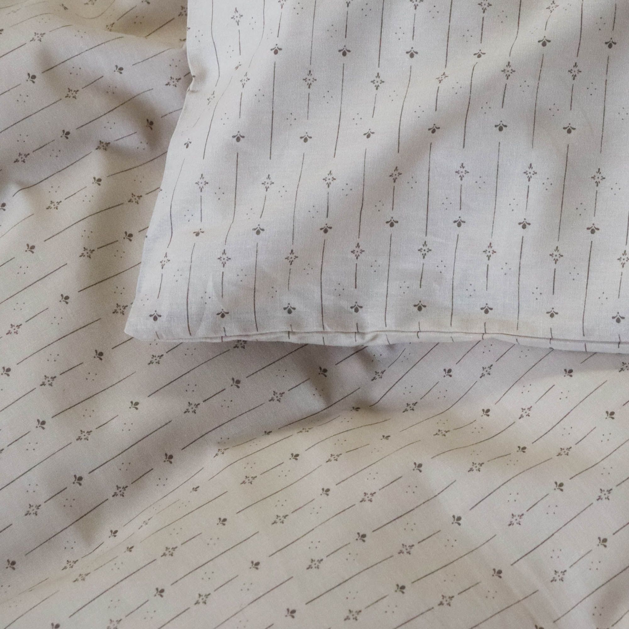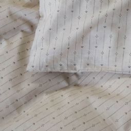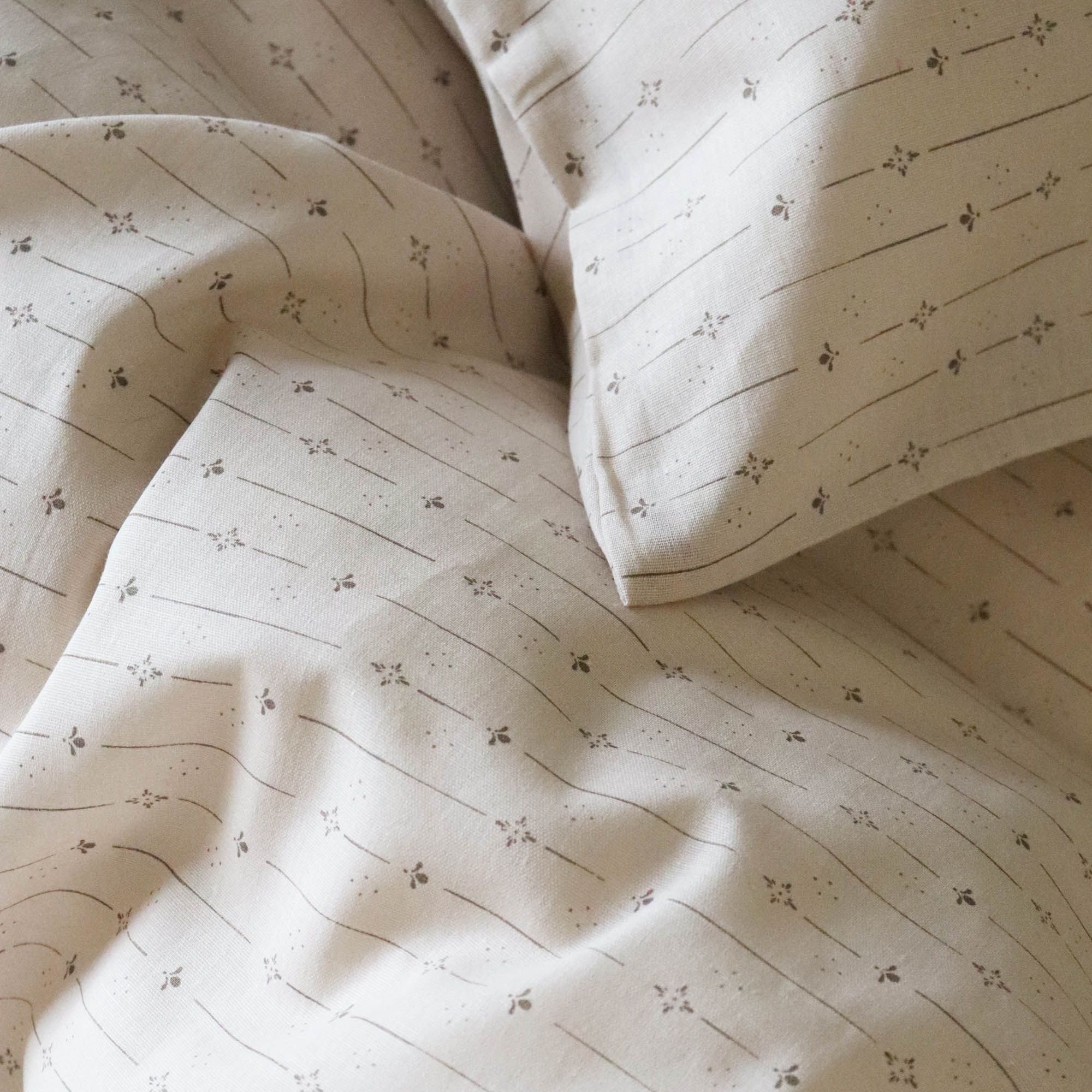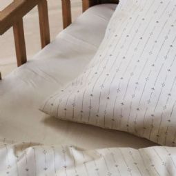 Blødt junior sengetøj i 100% bomuld, med blomstret striber. Produceret med lette og åndbare bomuldstråde som giver sengesættet en følelse af blødhed, der gør at dynen føles dejlig for dit barn at sove med. Balancen i naturlig egenskaber og komfort fra det bløde materiale, kombineret med det hyggelige design, gør dette sæt til en sikker favorit hos dit barn.