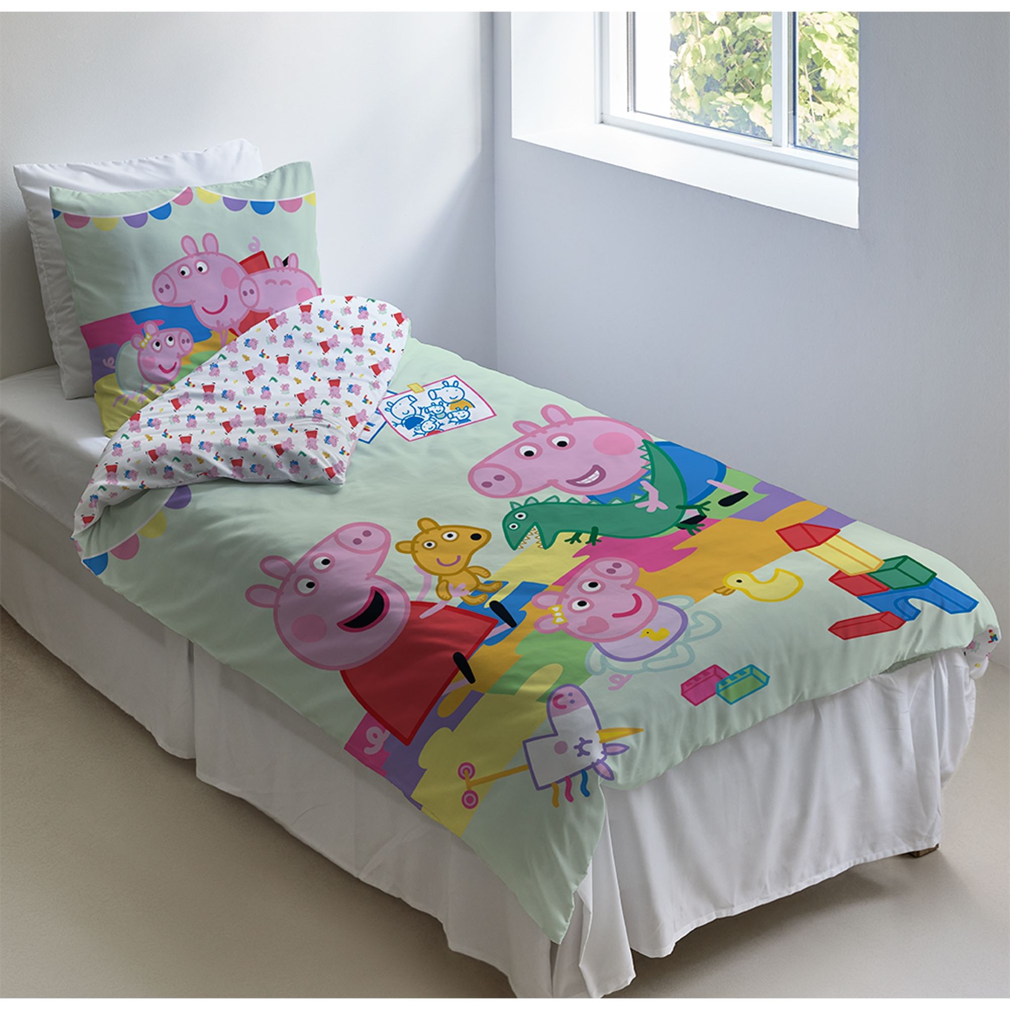 Junior sengetøj 100x140 cm - Vendbart sengesæt med Gurli Gris' familie - Family Fun - 100% bomulds sengelinned