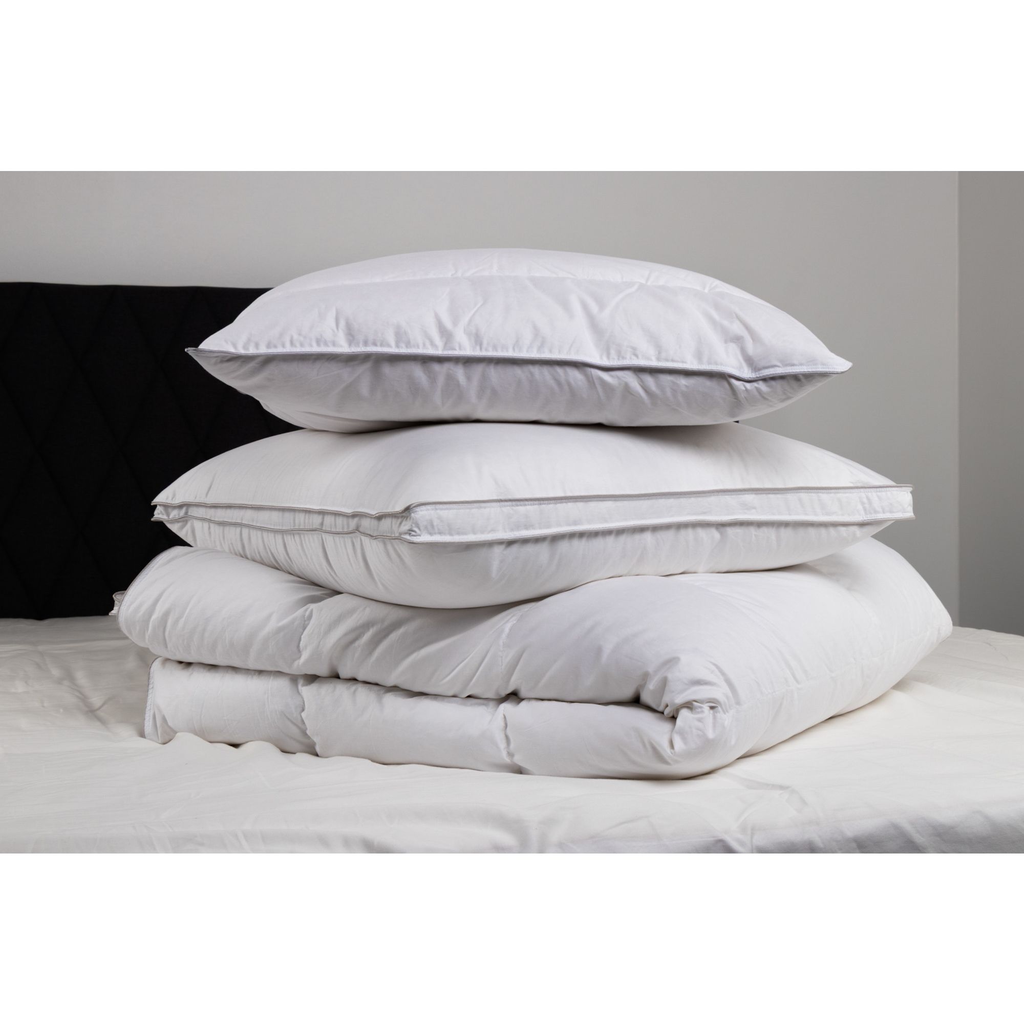 Det bløde bolster af 100% bomuld er helt fint tætvævet i store kassetter, så dunene har bedste vilkår for god isolering og mest jævne varmefordeling. Denne tætte vævning gør også at dynen er NOMITE certificeret, da støvmider ikke kan trænge igennem bolsteret, hvilket også gør dynen velegnet til allergikere.