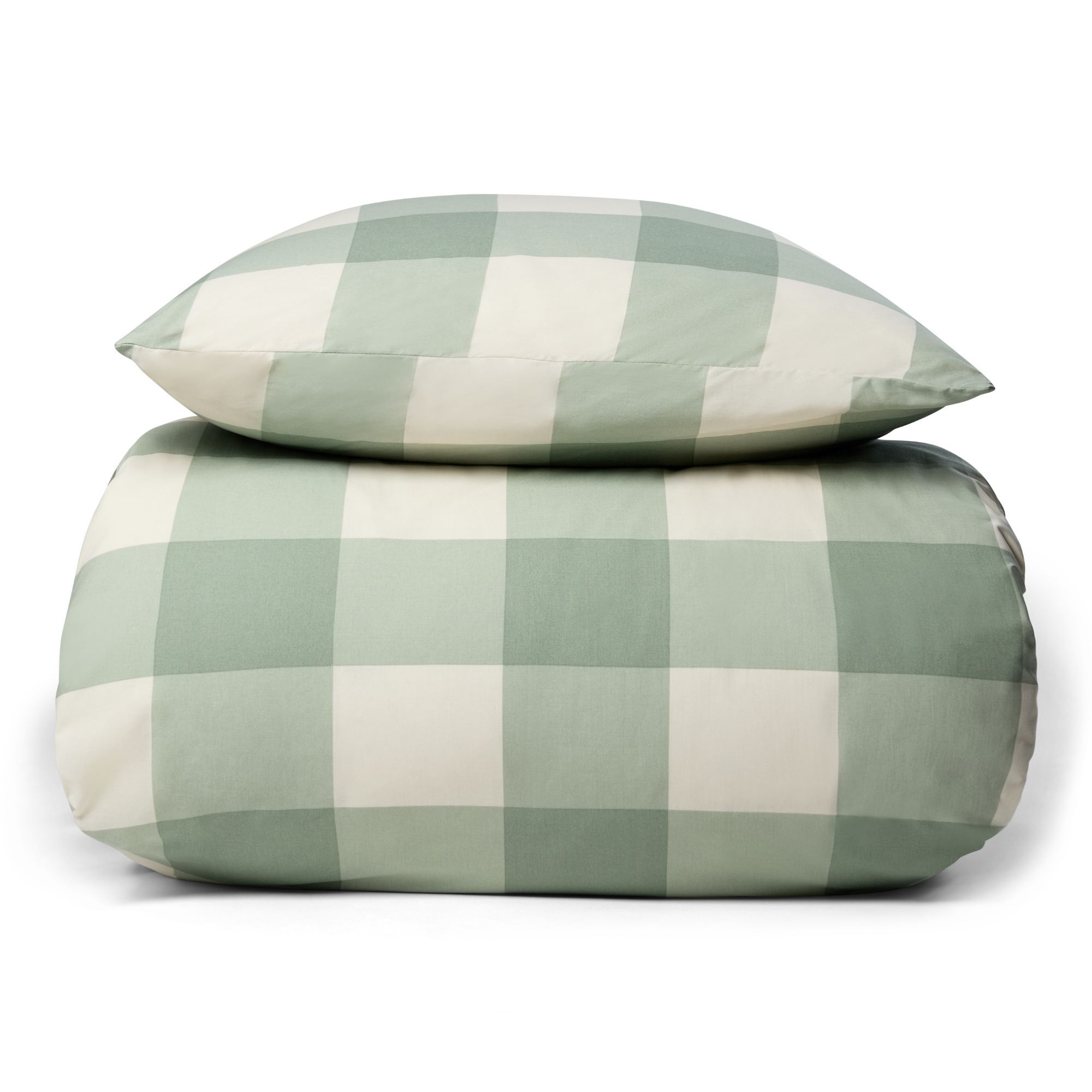 King size sengetøj 100% bomuld - 240x220 cm - Grønt sengesæt med store tern - Nordstrand Home - Dynebetræk i 100% bomuld