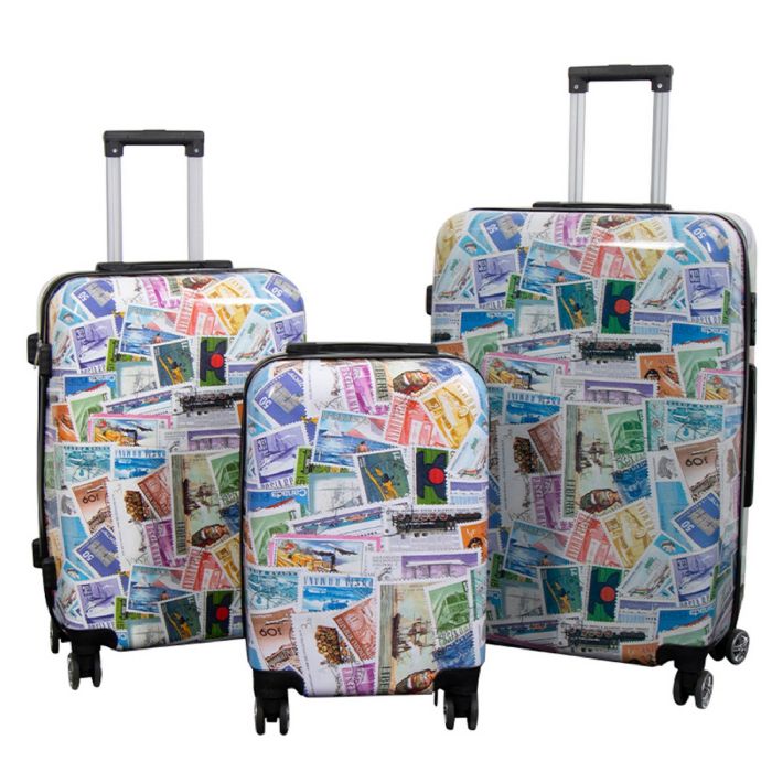 Kuffertsæt i en solid og praktisk udgave. Sættet har et flot og let genkendeligt motiv med frimærker.
