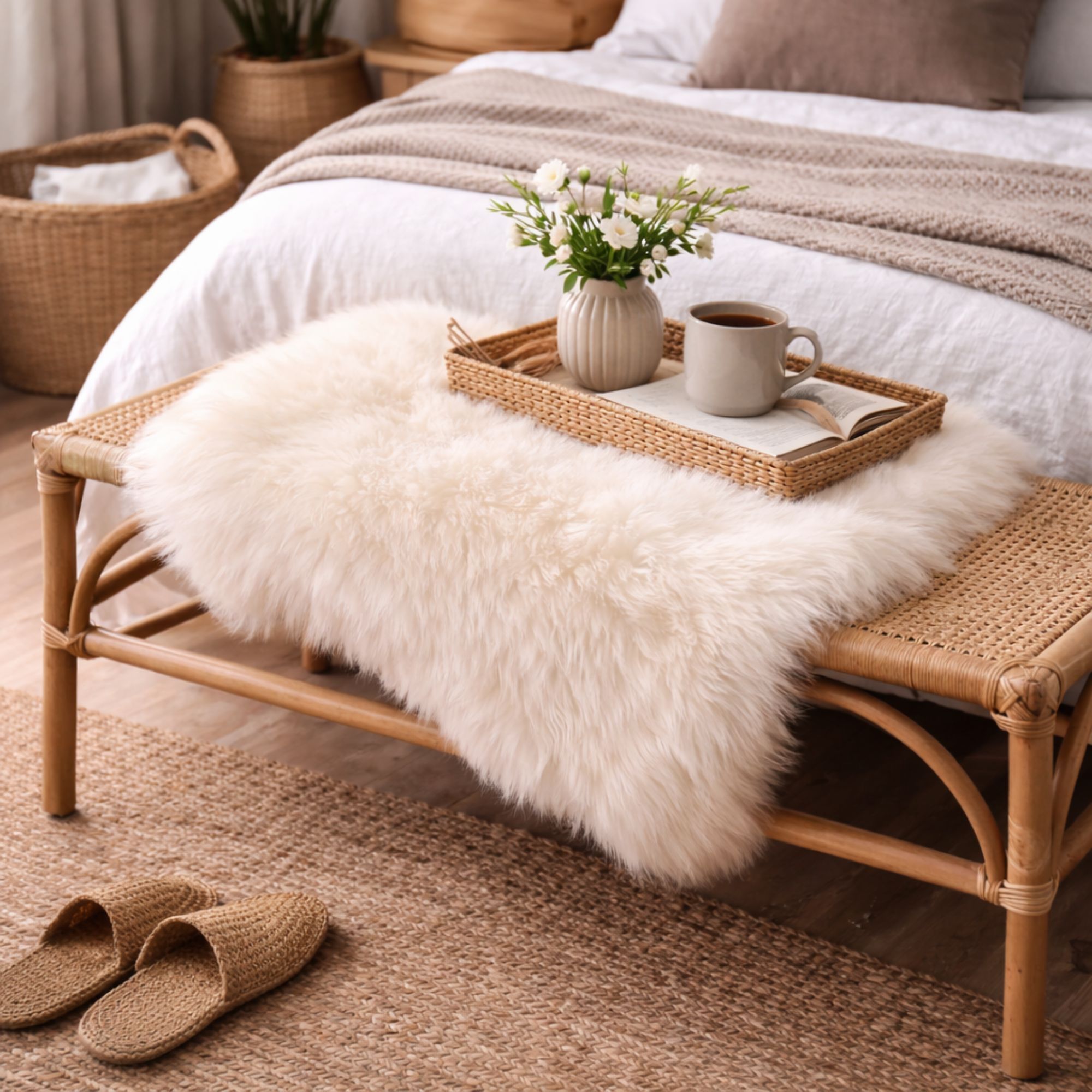 Vores imiterede lammeskind tilfører et strejf af elegance til dit hjem. Med sin flotte hvide farve og bløde tekstur er det både visuelt tiltalende og behageligt at røre ved. Dette lammeskind er ideelt til indendørs brug, perfekt til at fremhæve din stol eller som et hyggeligt tæppe i stuen, soveværelset eller børneværelset.