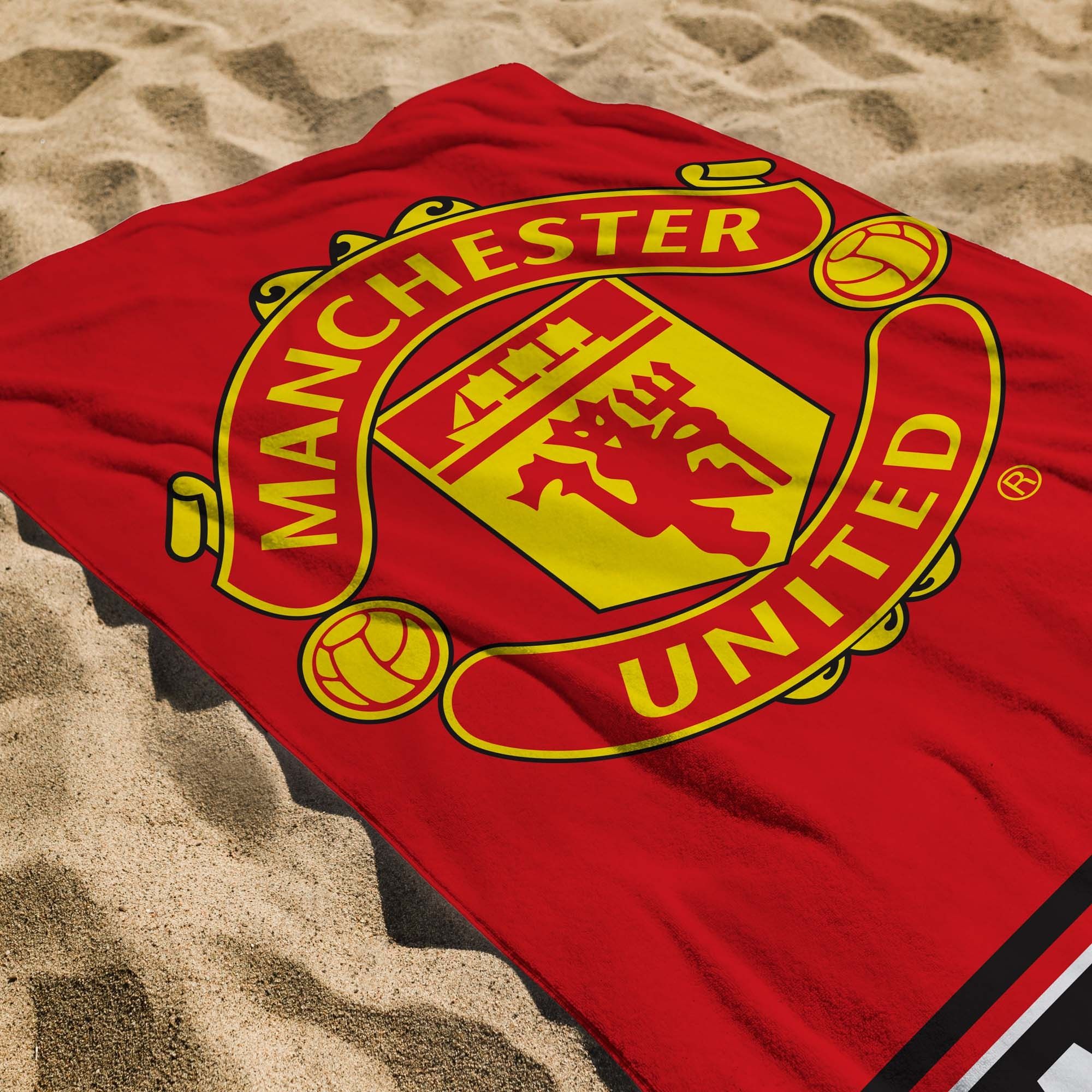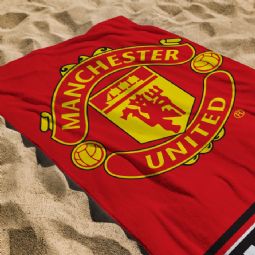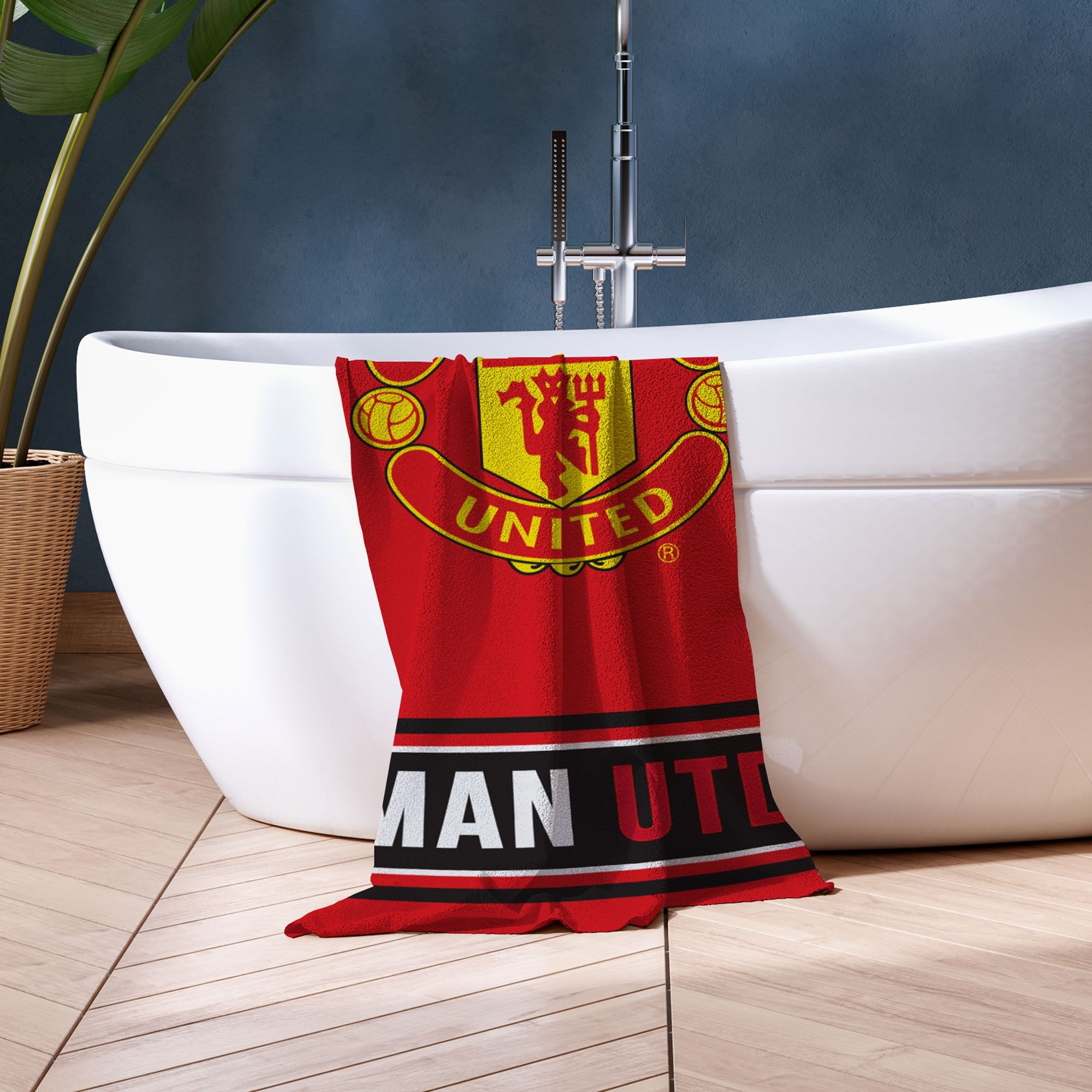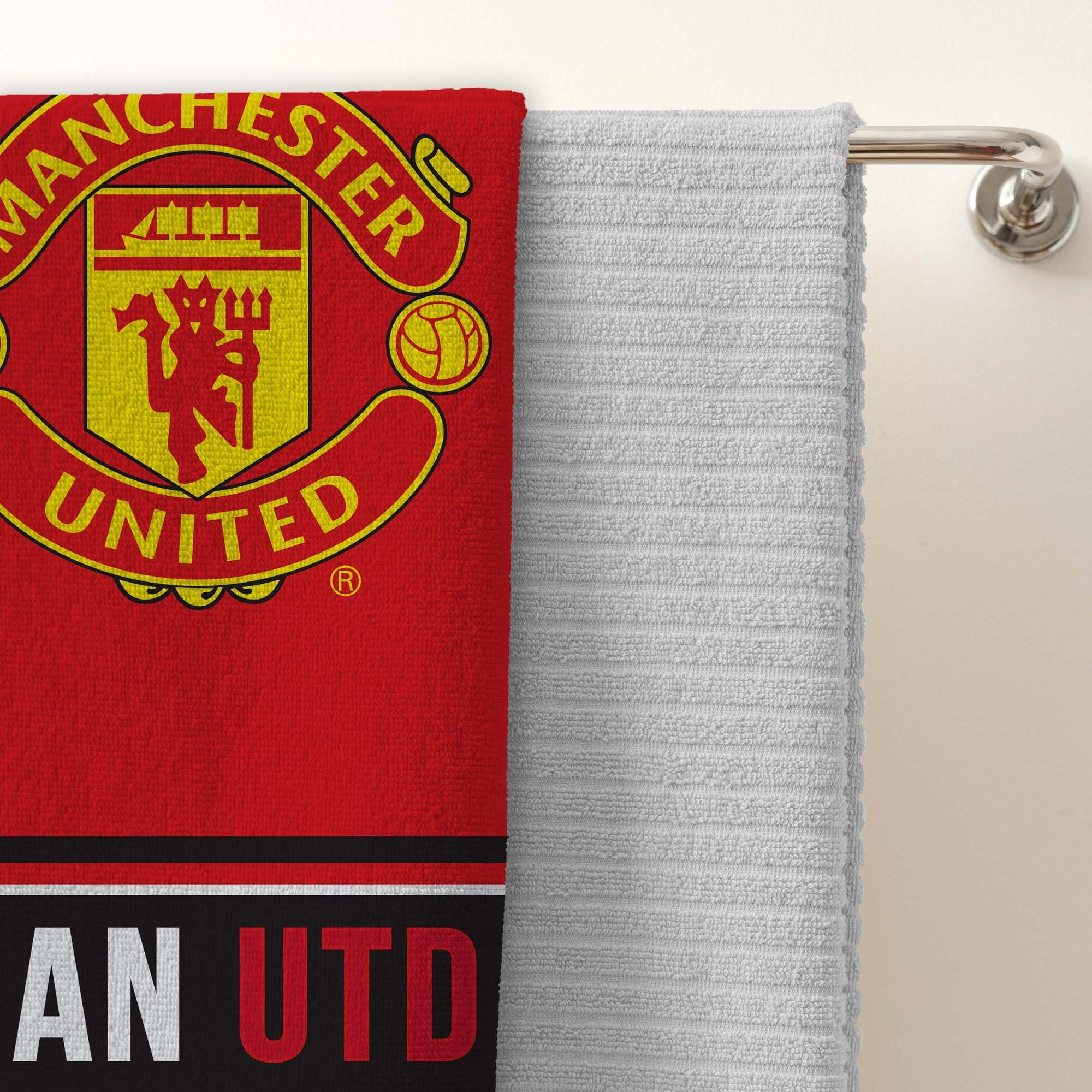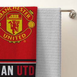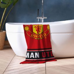 Blødt badehåndklæde i 100% bomuld, med motiv af Manchester United logo. Håndklædets fodbold motiv, vil helt sikkert bringe et smil frem på den lille fodboldfan så badetid bliver sjovere. Balancen i naturlig komfort fra det bløde materiale og det hyggelige fodbold design, gør dette håndklæde til en sikker favorit hos dit barn.