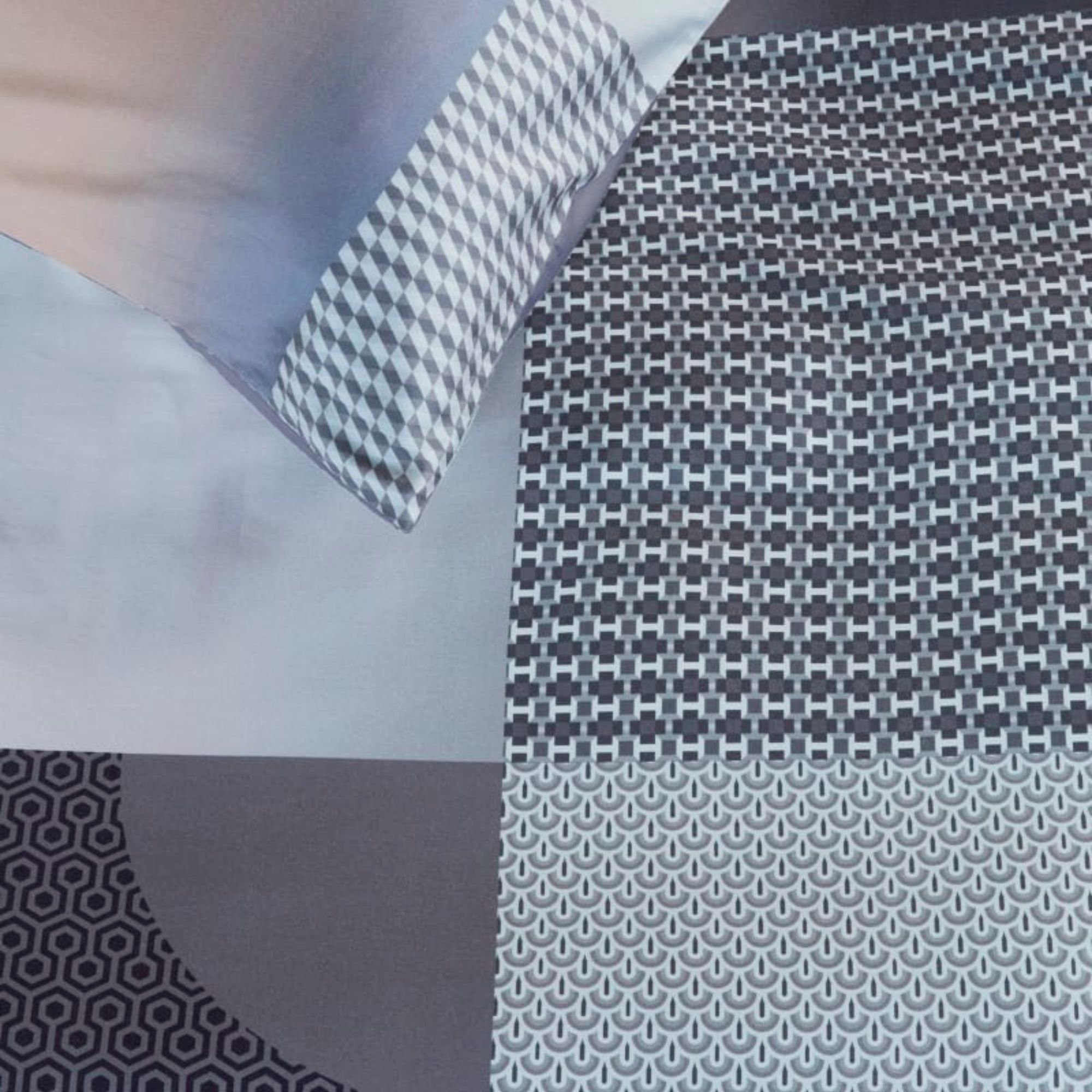 Mønstret økologisk sengetøj 140x220 cm - Vendbart sengesæt i 100% økologisk bomuldssatin - Robbinson Grey - Beddinghouse sengelinned