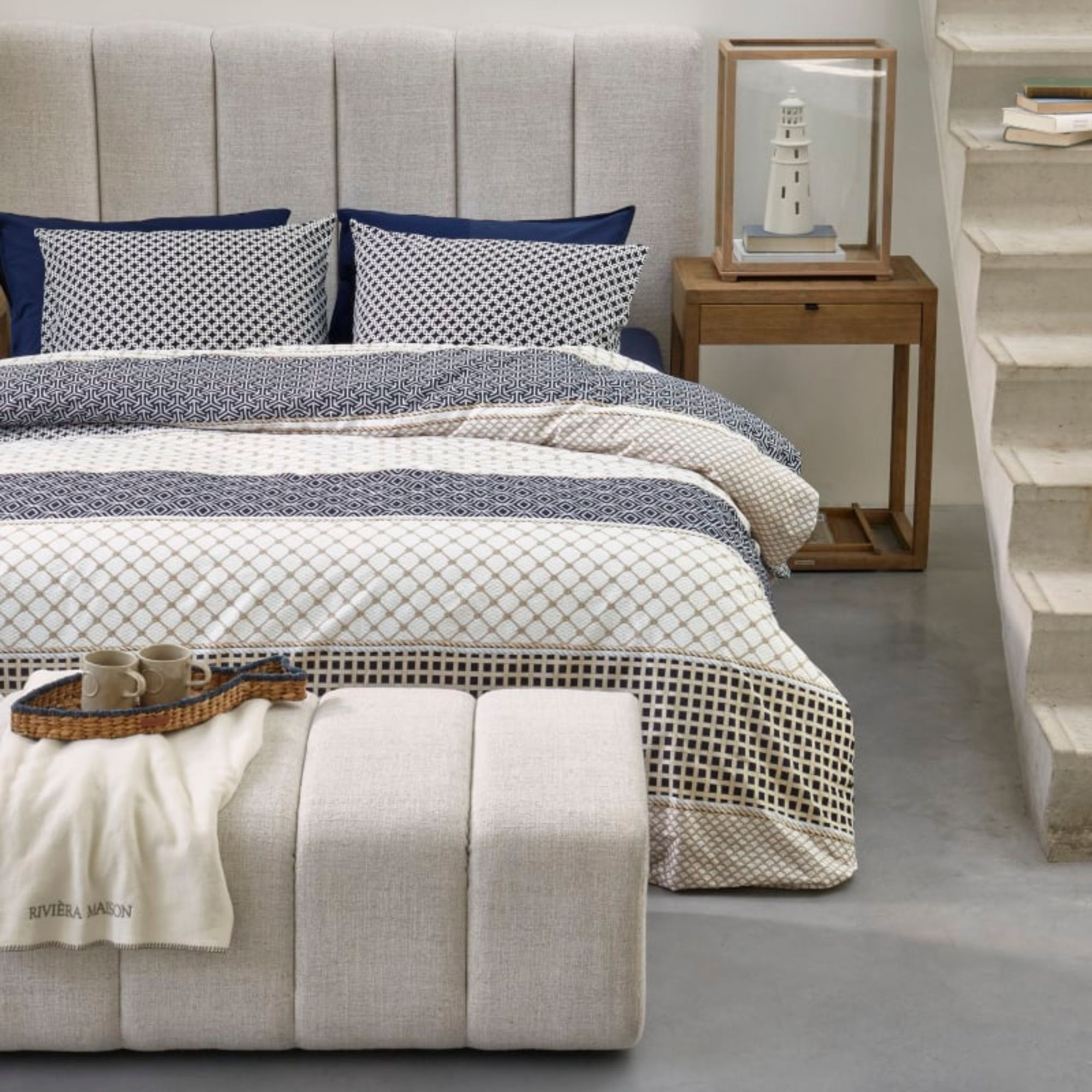 Mønstret sengetøj 140x220 cm - Sengesæt i 100% blød bomuld - Ropes Navy - Riviéra Maison sengelinned