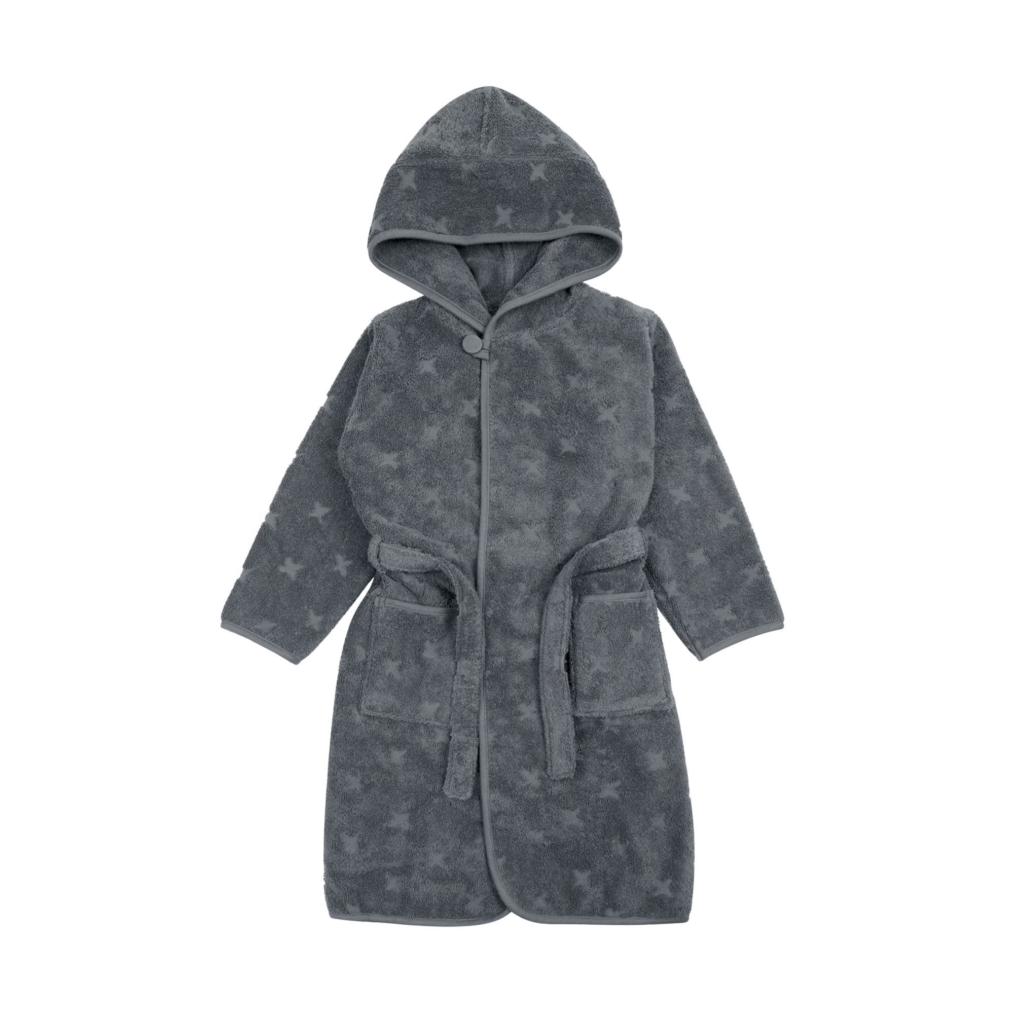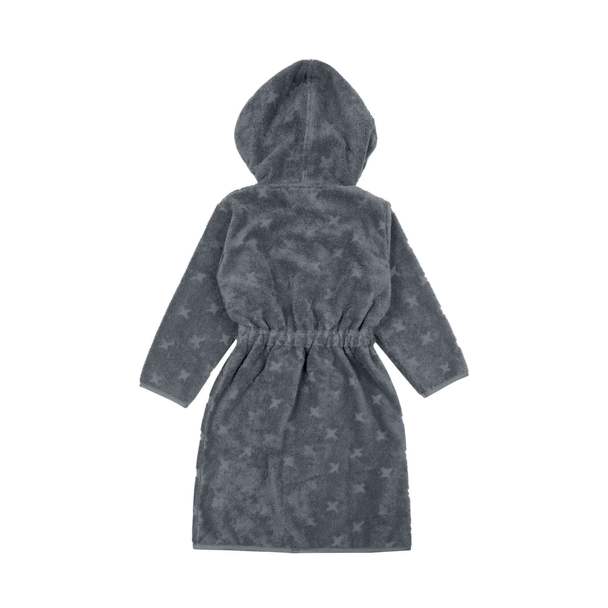 Gør morgener og aftener ekstra hyggelige med denne bløde morgenkåbe til børn. Morgenkåben er fremstillet i 100% økologisk bomuld og har et fint stjernedesign i en mørkeblå nuance, som giver et roligt og moderne udtryk. Den bløde kvalitet føles behagelig mod huden og er perfekt efter badet, på kølige morgener eller til afslapning derhjemme. Morgenkåben er har en stor hætte, som giver ekstra varme og komfort, samt elastik i taljen, der sikrer en god pasform. Det praktiske bindebånd er fastsyet bagpå, så det ikke falder af eller bliver væk - en smart detalje i en travl hverdag. Derudover er morgenkåben udstyret med lommer, så barnet nemt kan opbevare småting eller holde hænderne varme.
