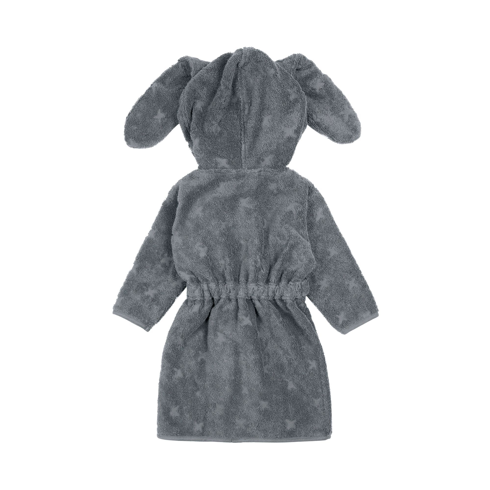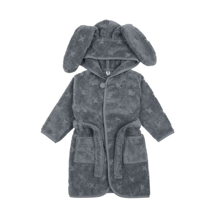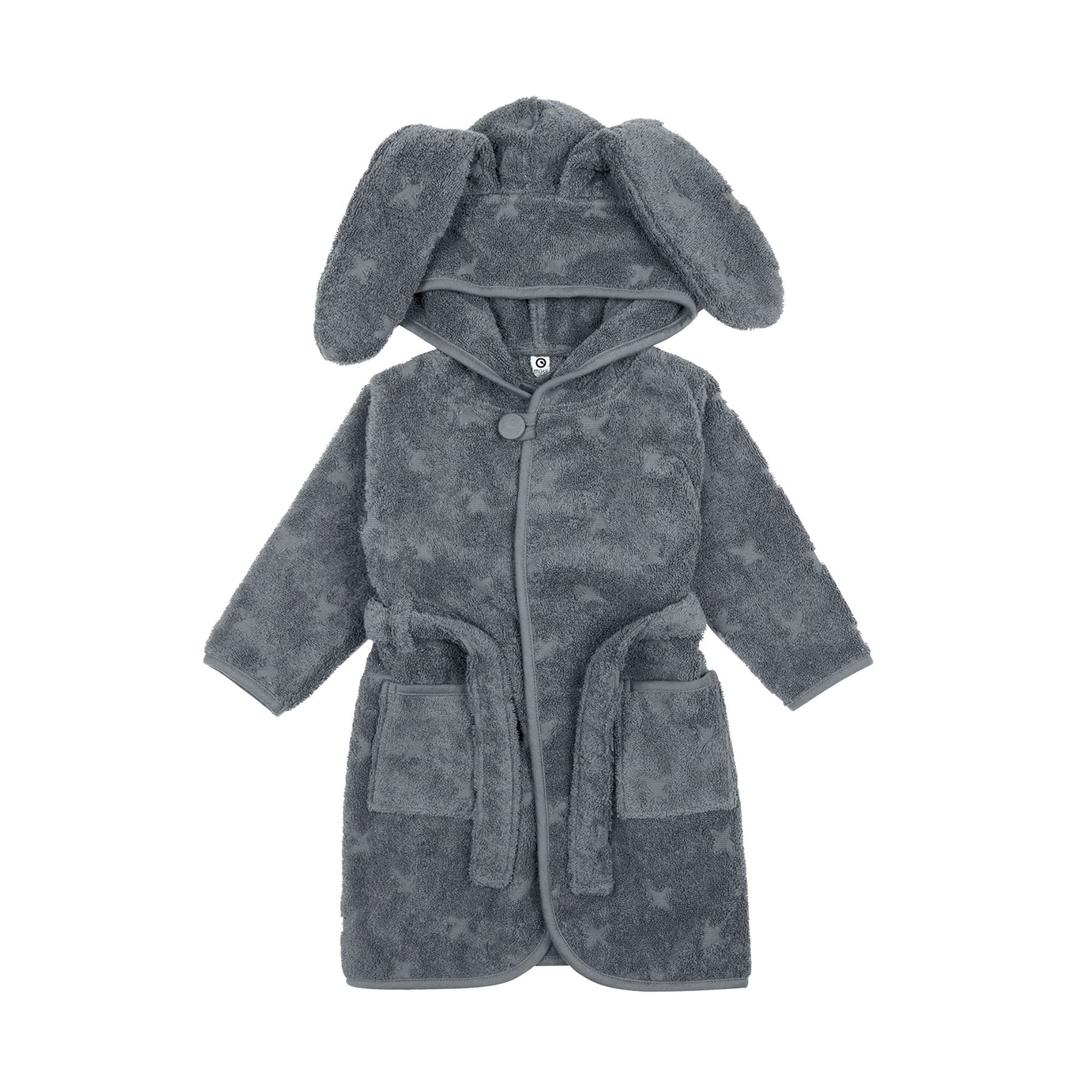 Gør morgener og aftener ekstra hyggelige med denne bløde morgenkåbe til børn. Morgenkåben er fremstillet i 100% økologisk bomuld og har et fint stjernedesign med kaninører i en mørkeblå nuance, som giver et roligt og moderne udtryk. Den bløde kvalitet føles behagelig mod huden og er perfekt efter badet, på kølige morgener eller til afslapning derhjemme. Morgenkåben er har en stor hætte, som giver ekstra varme og komfort, samt elastik i taljen, der sikrer en god pasform. Det praktiske bindebånd er fastsyet bagpå, så det ikke falder af eller bliver væk - en smart detalje i en travl hverdag. Derudover er morgenkåben udstyret med lommer, så barnet nemt kan opbevare småting eller holde hænderne varme.
