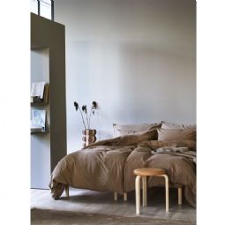 Frøya-serien er produceret af 100% økologisk bomuld, som er garnfarvet og stenvasket, hvilke blødgør fibrene og netop den unikke behandling gør at dobbelt sengesættet får det helt rigtig stonewashed finish og look og et naturligt krøllet look. Det at sættet er garnfarvet betyder at bomuldstråden bliver farvet inden vævningen. Der er valgt bomuld, som er kendt for sin renhed og høje slidstyrke, og de ekstra fine bomuldstråde føles behagelige mod huden. Hvis du kan lide et råt sengetøj, som du kan elske år efter år, er det Frøya-serien, du skal lade skinne i soveværelset. Stenvasken giver også sengetøjet et mere afslappet look, der krøller på den helt rigtige måde. Godt at vide er, at i Frøya-serien bruges 30% mindre vand end traditionelle farvemetoder - og at det er Svanemærket for en bedre morgendag.