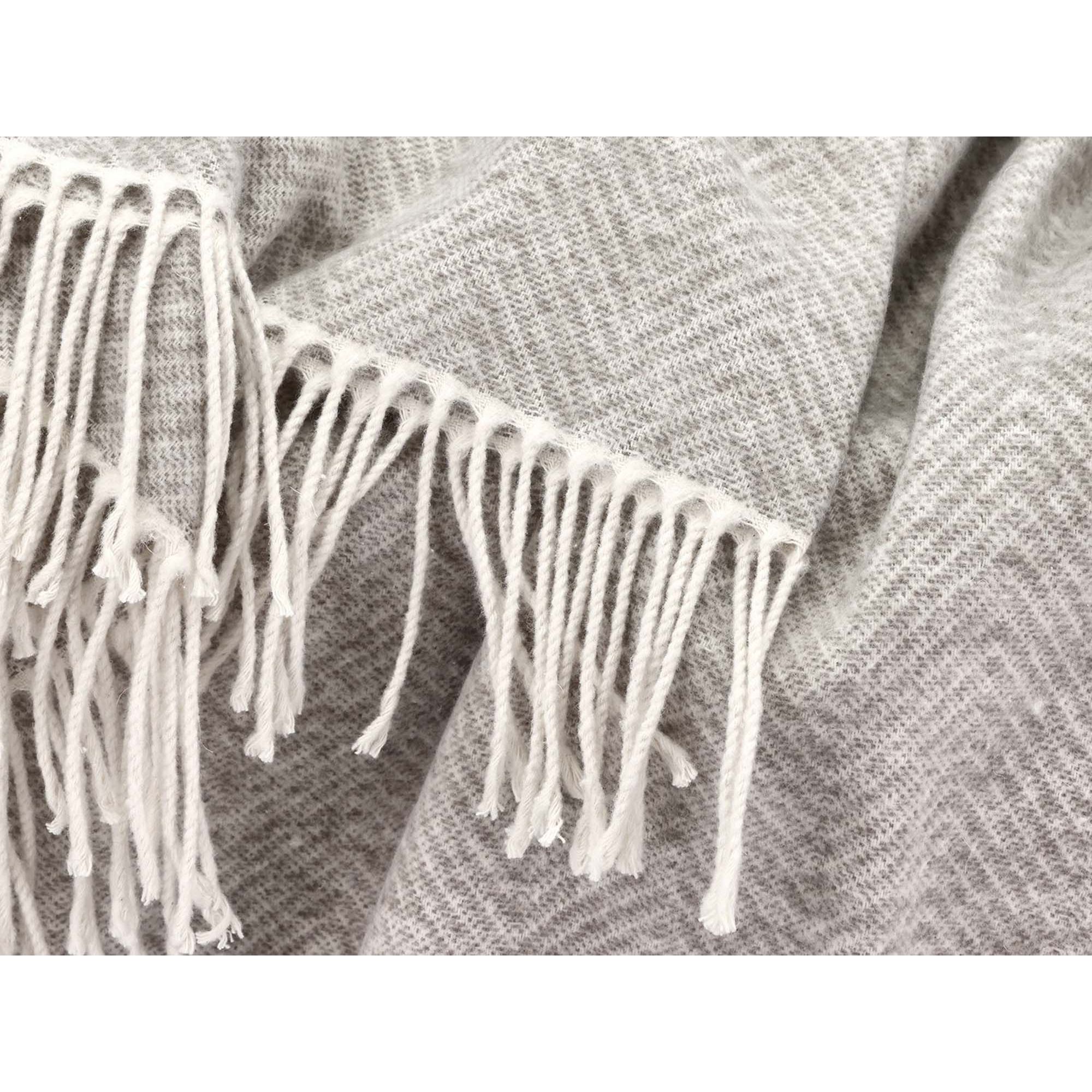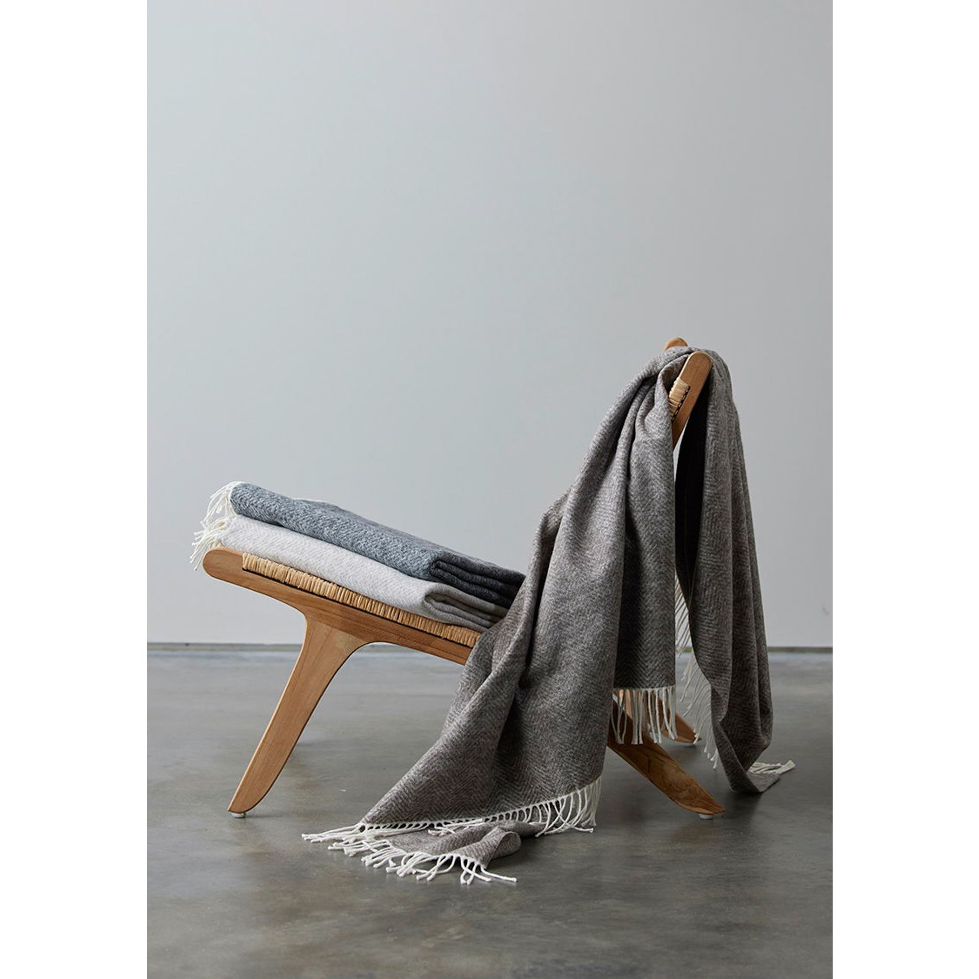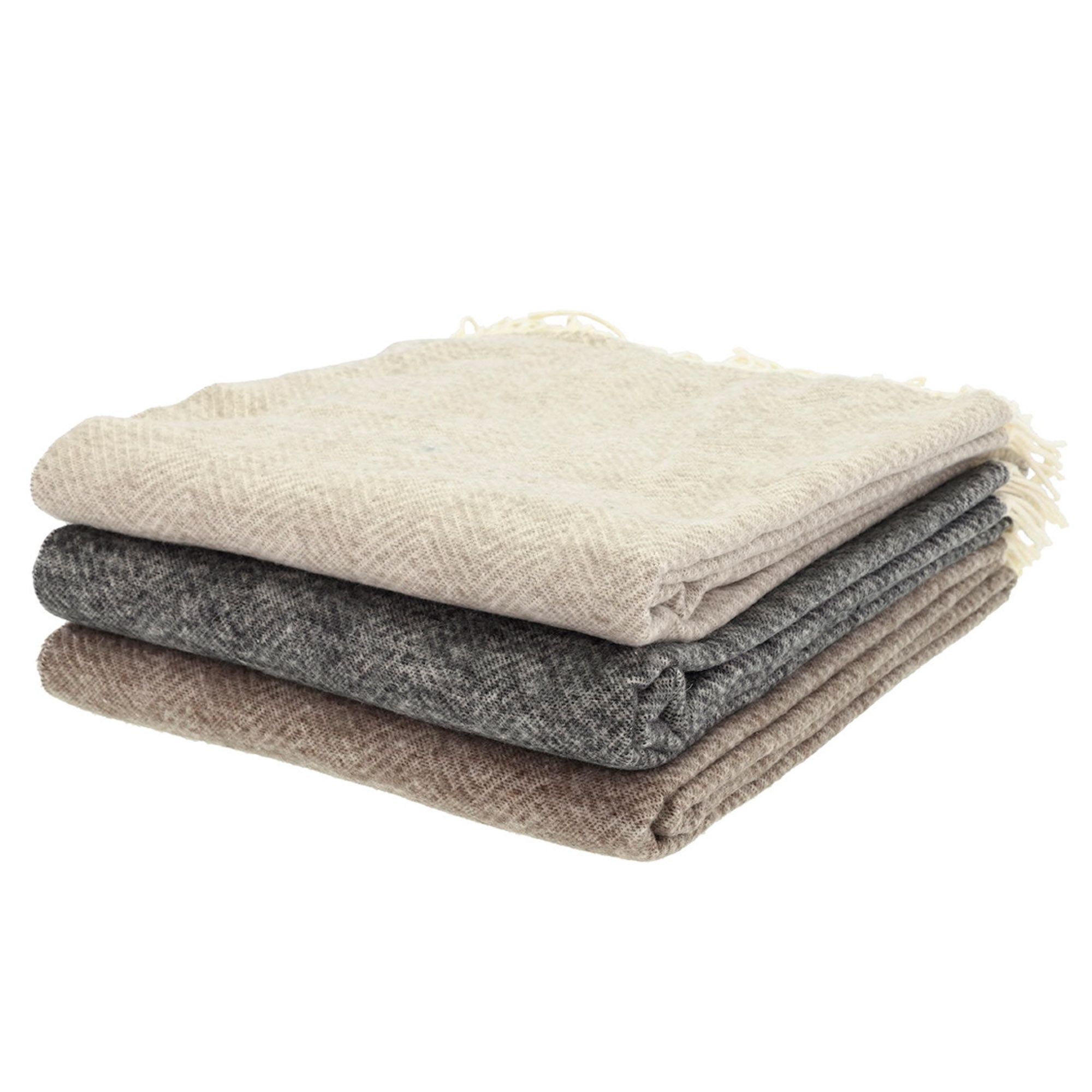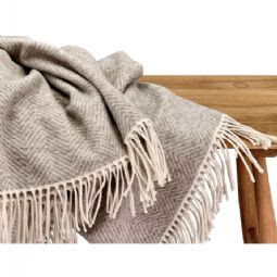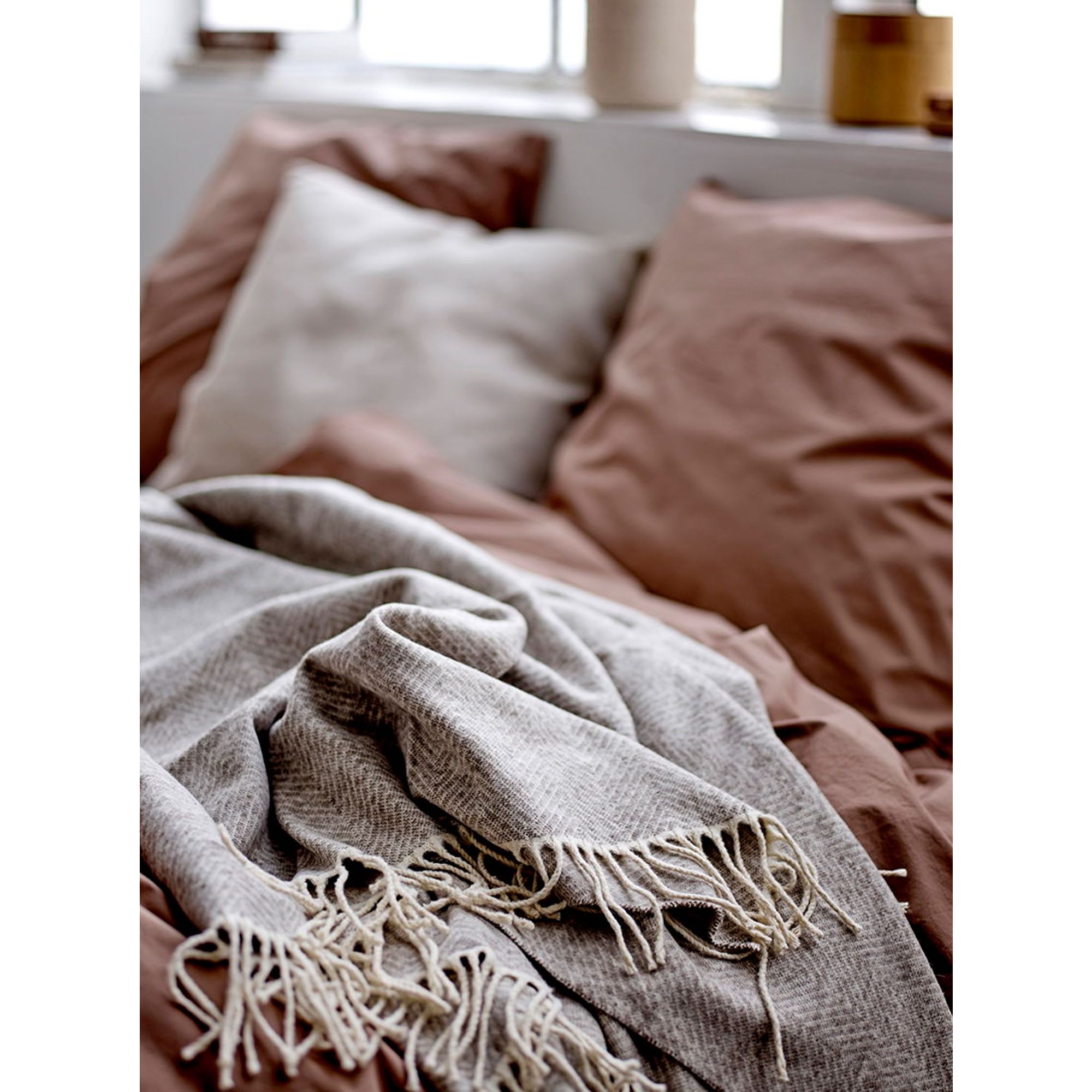 Den rolige beige farve og det elegante sildebensmønster skaber en hyggelig atmosfære og gør plaiden nem at kombinere med øvrige tekstiler i hjemmet.