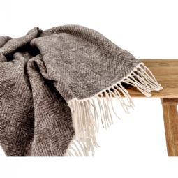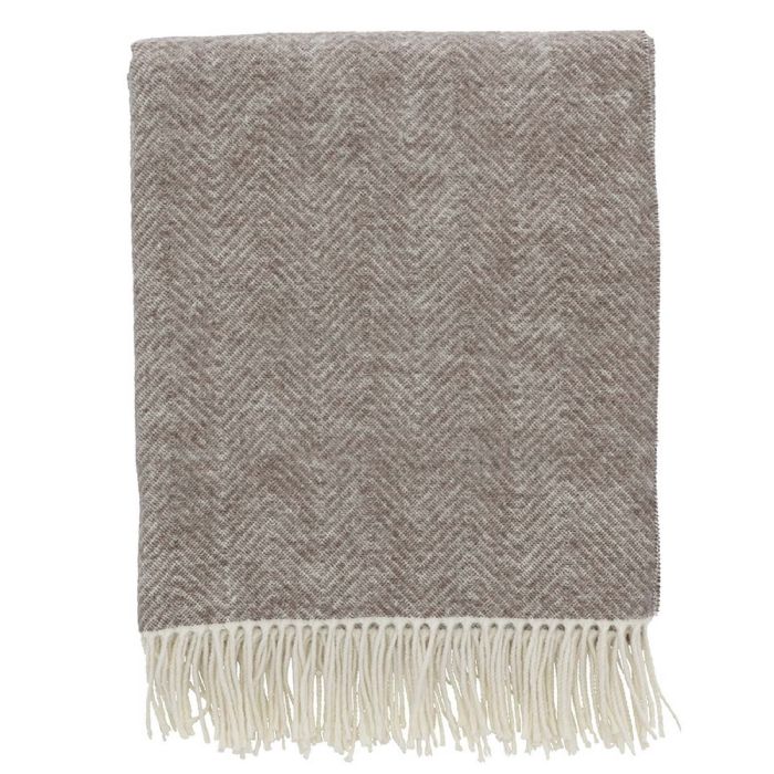 Den rolige beige farve og det elegante sildebensmønster skaber en hyggelig atmosfære og gør plaiden nem at kombinere med øvrige tekstiler i hjemmet.