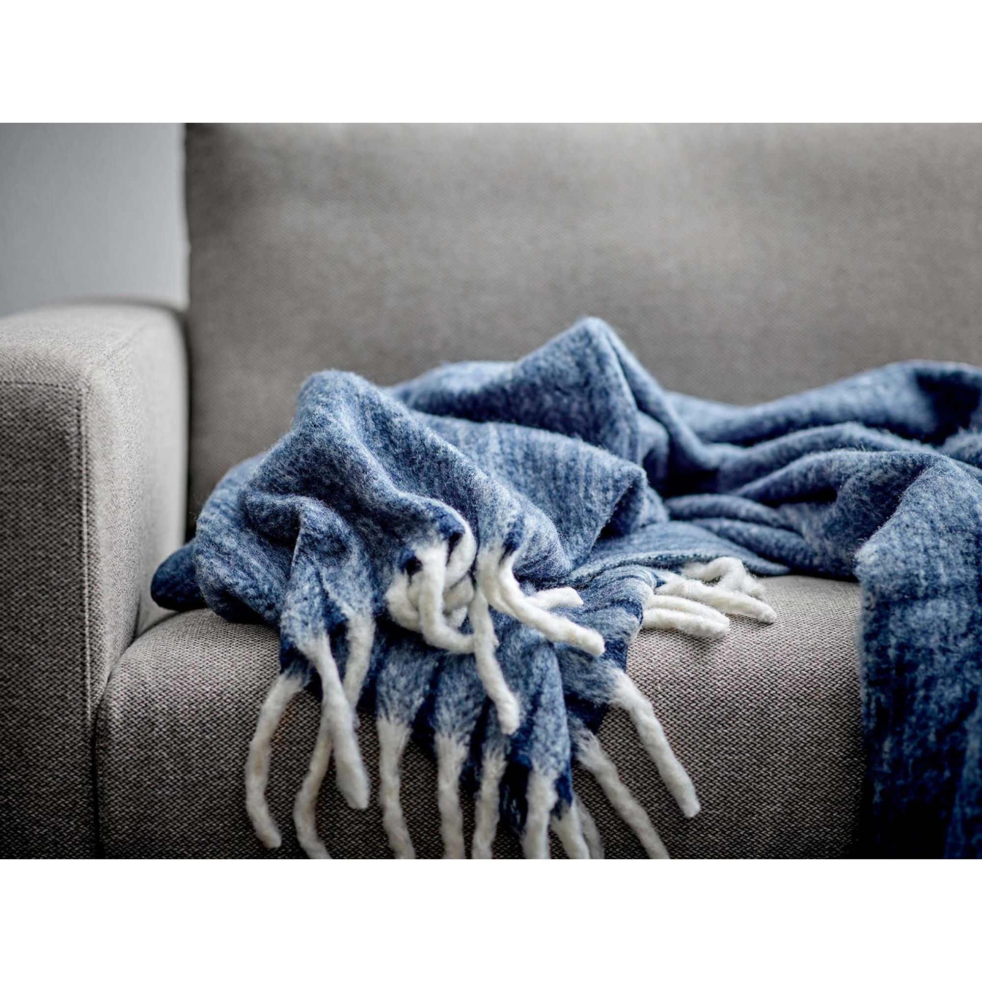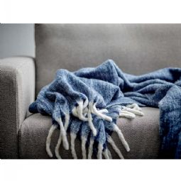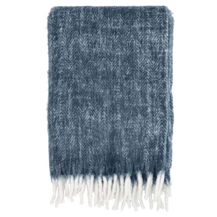 Plaiden er fremstillet i 100% akryl med en luksuriøs børstet overflade, der giver en utrolig blød og behagelig følelse mod huden. Dette materiale minder utrolig meget og det børstet look fra Mohair tråde. Det klassiske sildebensmønster kombineret med den dybe blå farve skaber et tidløst og elegant udtryk i din boligindretning.