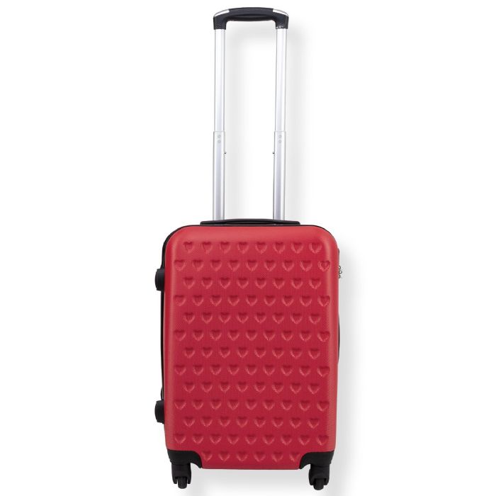 Denne røde kabinekuffert med hjerter er den perfekte rejsemakker til både korte og længere ture. Rejs nemt og sikkert med en kabinekuffert fremstillet i slidstærkt ABS plast. Materialet giver en stærk og holdbar overflade, som er modstandsdygtig overfor de hårde slag og pres, der kan opstå på f.eks. et bagagebånd. Det slidstærke materiale beskytter altså dine ejendele på hele rejsen - samtidig er kufferten let og nem at håndtere.