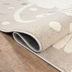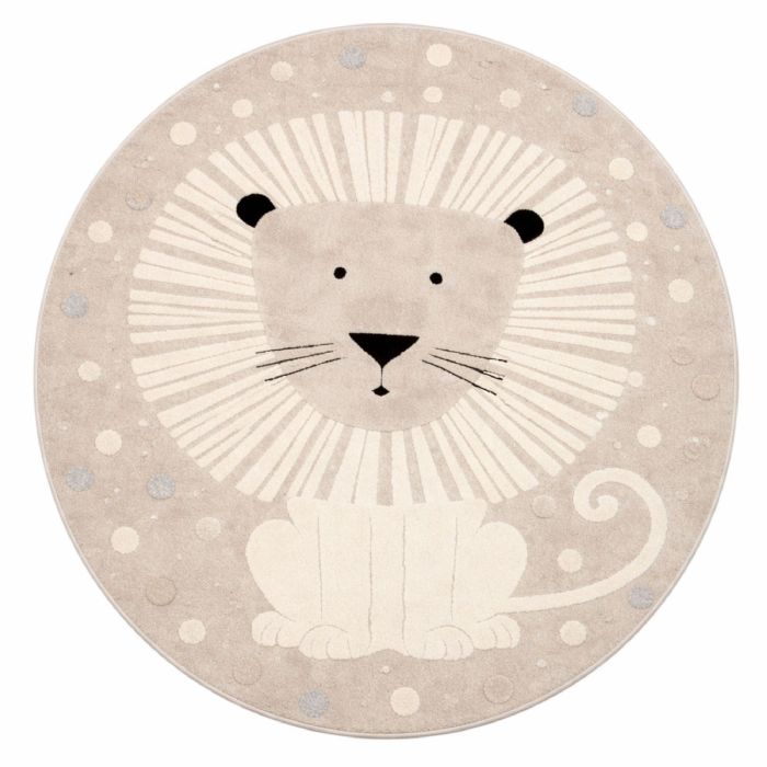Sødt beige gulvtæppe med løvemotiv fra Elio Kids - det perfekte valg til et hyggeligt og indbydende børneværelse. Det søde løvedesign skaber en legende stemning, samtidig med at den runde form på 120x120 cm giver et blødt i rummet. Tæppet passer ideelt som legetæppe midt på gulvet, ved sengen eller i et hyggeligt legehjørne. Kombinationen af 50% polyester (PES) og 50% polypropylen (PP) gør tæppet både slidstærkt og nemt at vedligeholde, hvilket er ideelt til et aktivt børneværelse.