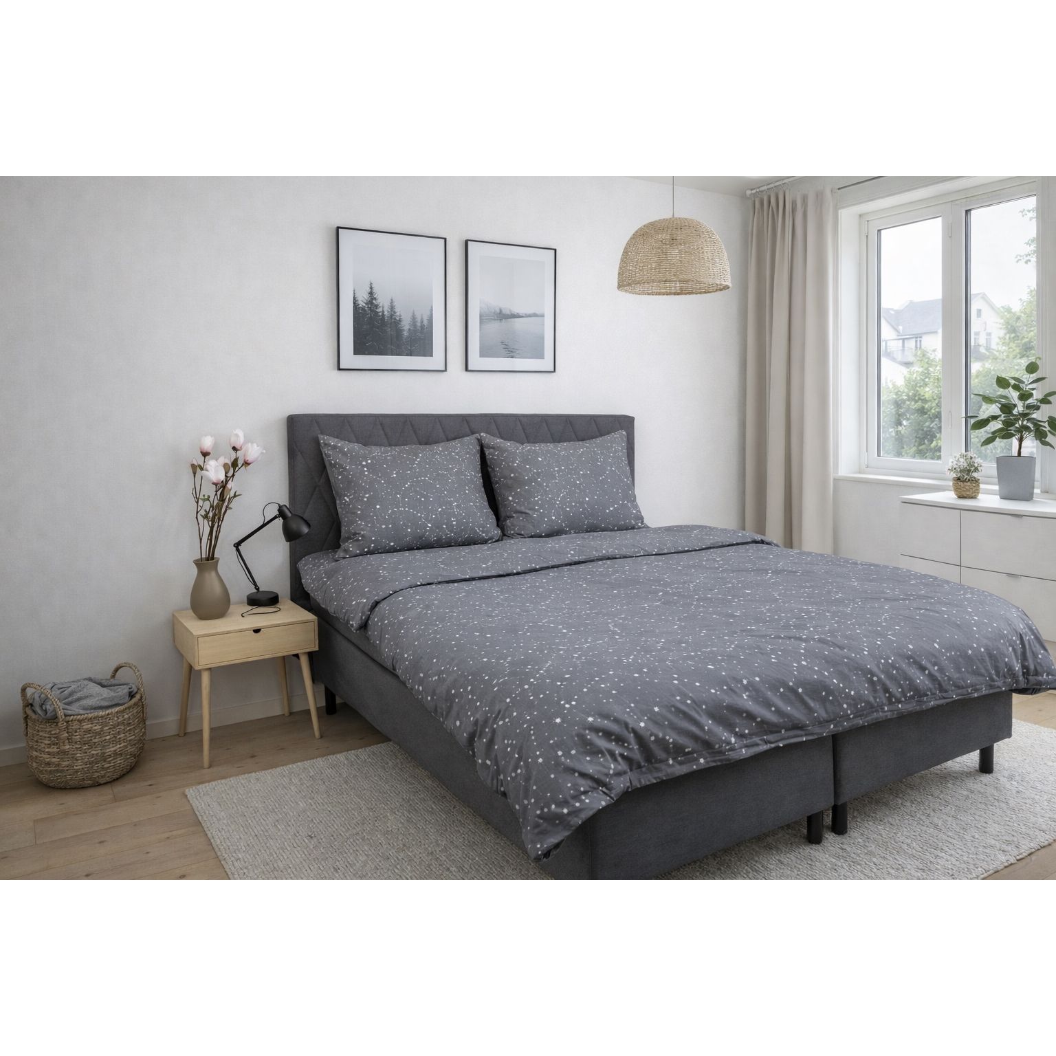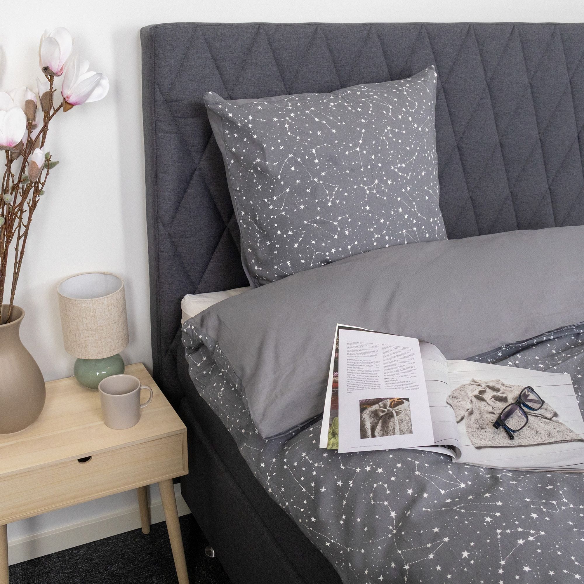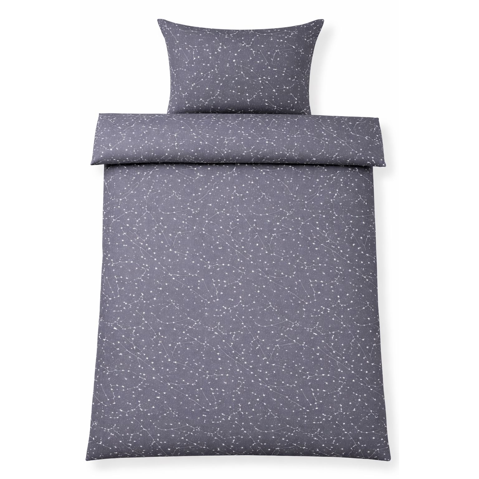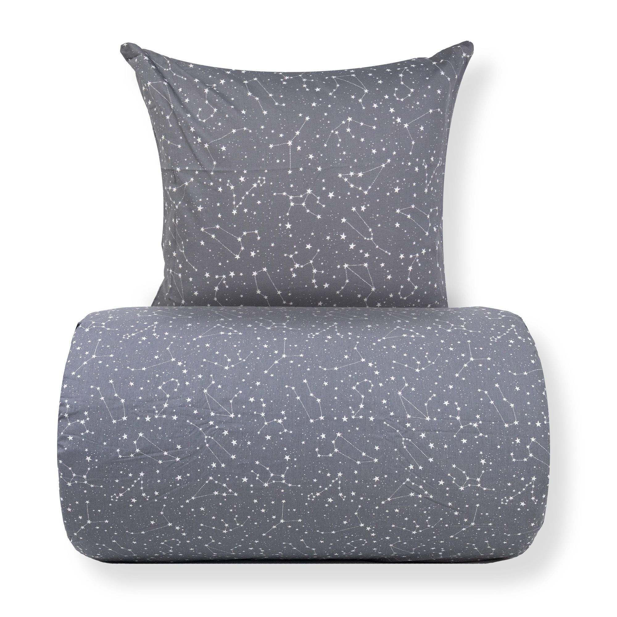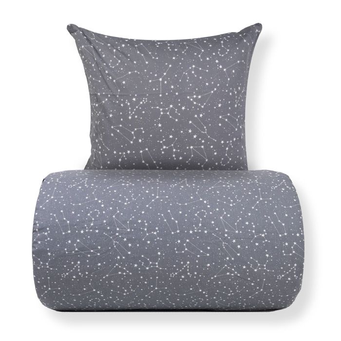 Sengetøj - 100% Bomuld - Zodiac grey - Vendbart med stjerner