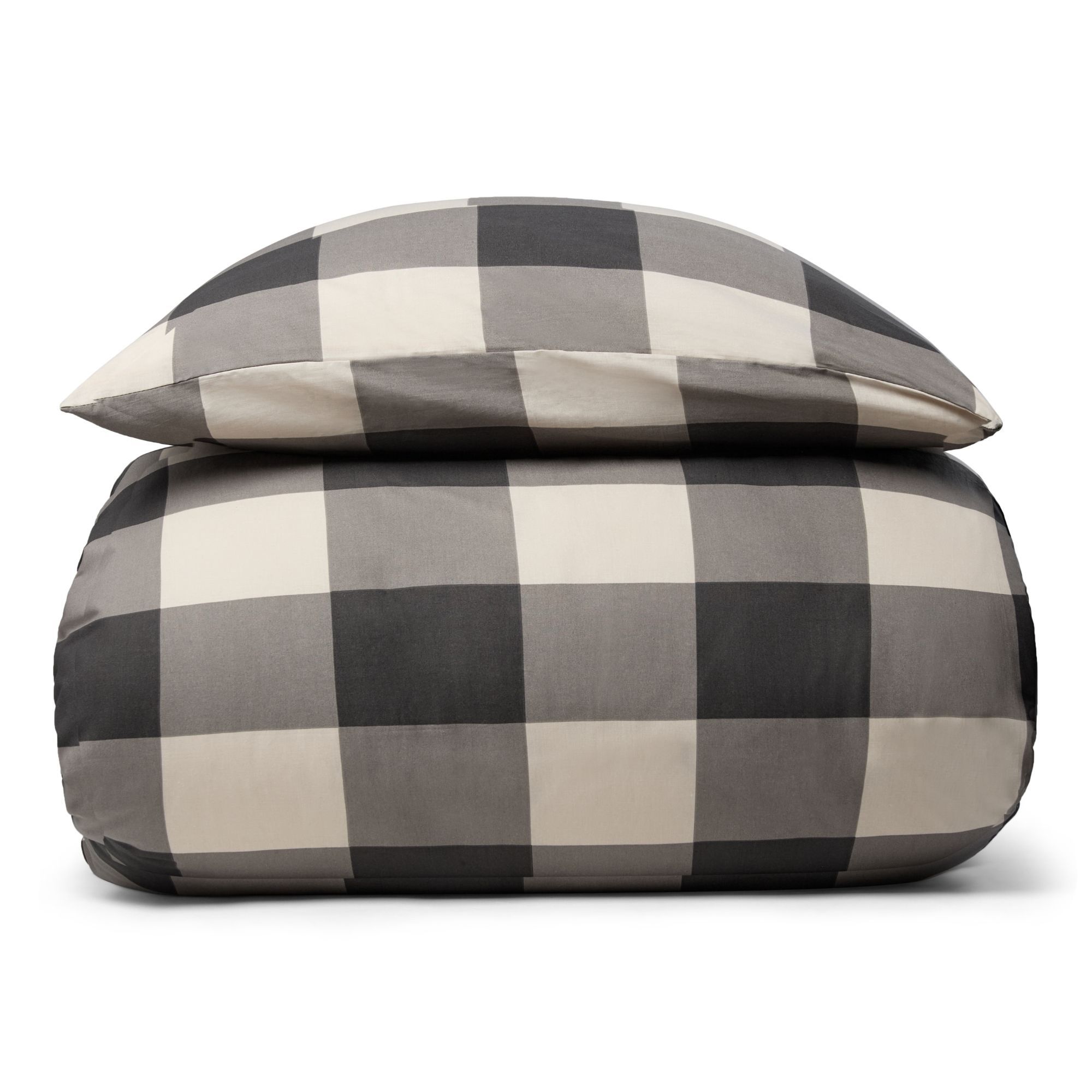 Sengetøj 100% bomuld - 140x200 cm - Gråt ternet sengesæt - Nordstrand Home dynebetræk