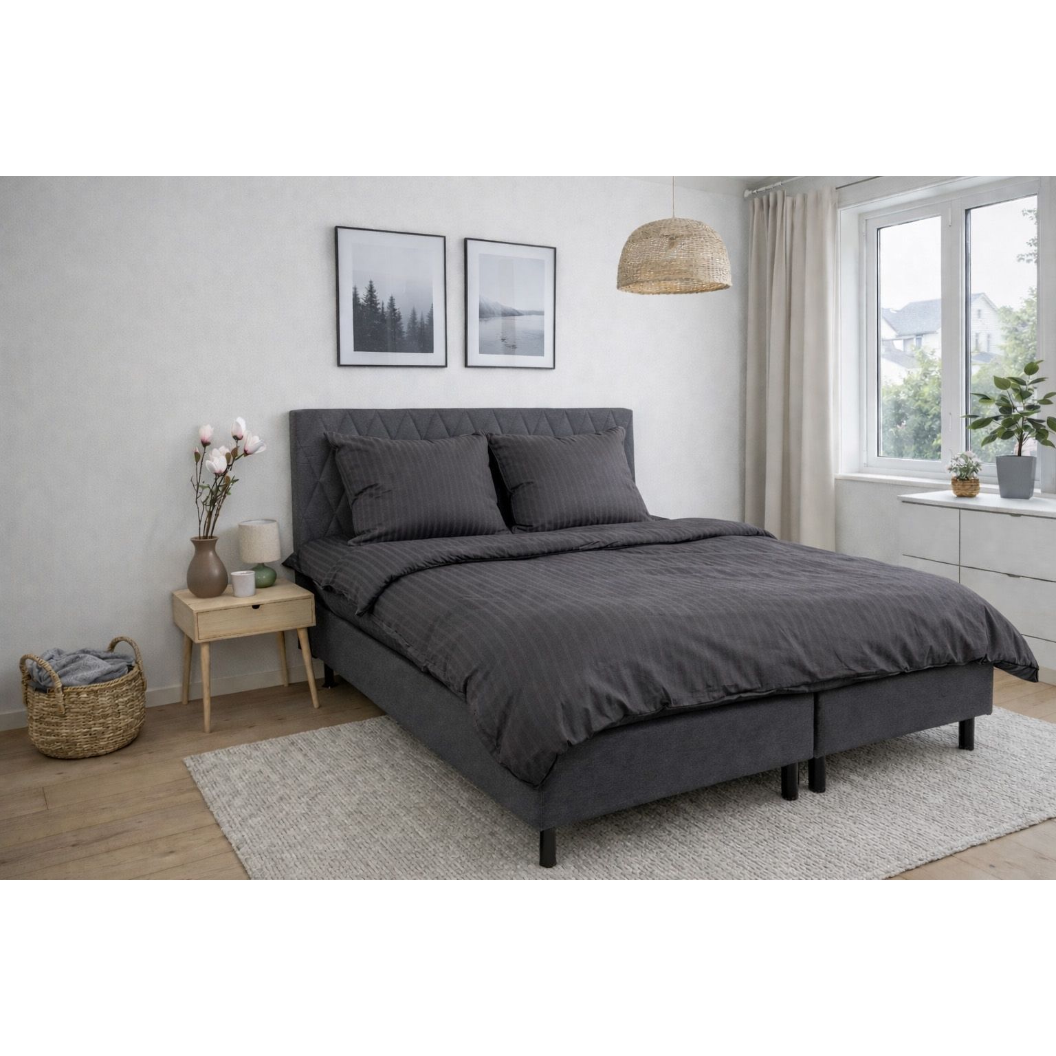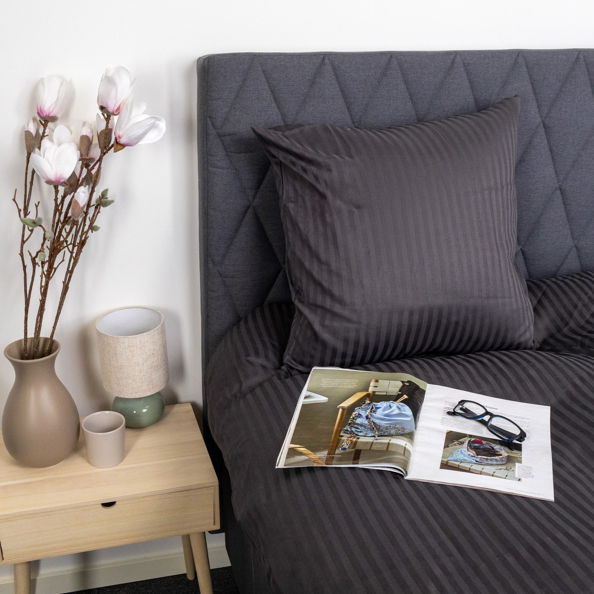 Skab et elegant og eksklusivt udtryk i soveværelset med dette mørkegrå stribet sengetøj i 100% bomuldssatin. Sengetøjet kombinerer klassisk design med høj komfort og er skabt til dig, der ønsker både luksus og funktionalitet i hverdagen.