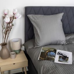 Skab et elegant og eksklusivt udtryk i soveværelset med dette lysegrå stribet sengetøj i 100% bomuldssatin. Sengetøjet kombinerer klassisk design med høj komfort og er skabt til dig, der ønsker både luksus og funktionalitet i hverdagen.