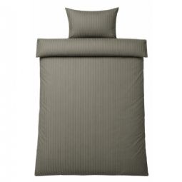 De jacquardvævede striber er vævet direkte ind i stoffet og skaber et diskret spil mellem matte og blanke flader. Denne væveteknik giver sengetøjet struktur og dybde uden brug af print og sikrer, at mønsteret forbliver flot og ensartet, selv efter gentagen vask. Det ensfarvede design gør det nemt at få sengesættet til at passe ind i alle former for indretning.