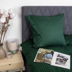 Skab et elegant og eksklusivt udtryk i soveværelset med dette grøn stribet sengetøj i 100% bomuldssatin. Sengetøjet kombinerer klassisk design med høj komfort og er skabt til dig, der ønsker både luksus og funktionalitet i hverdagen.