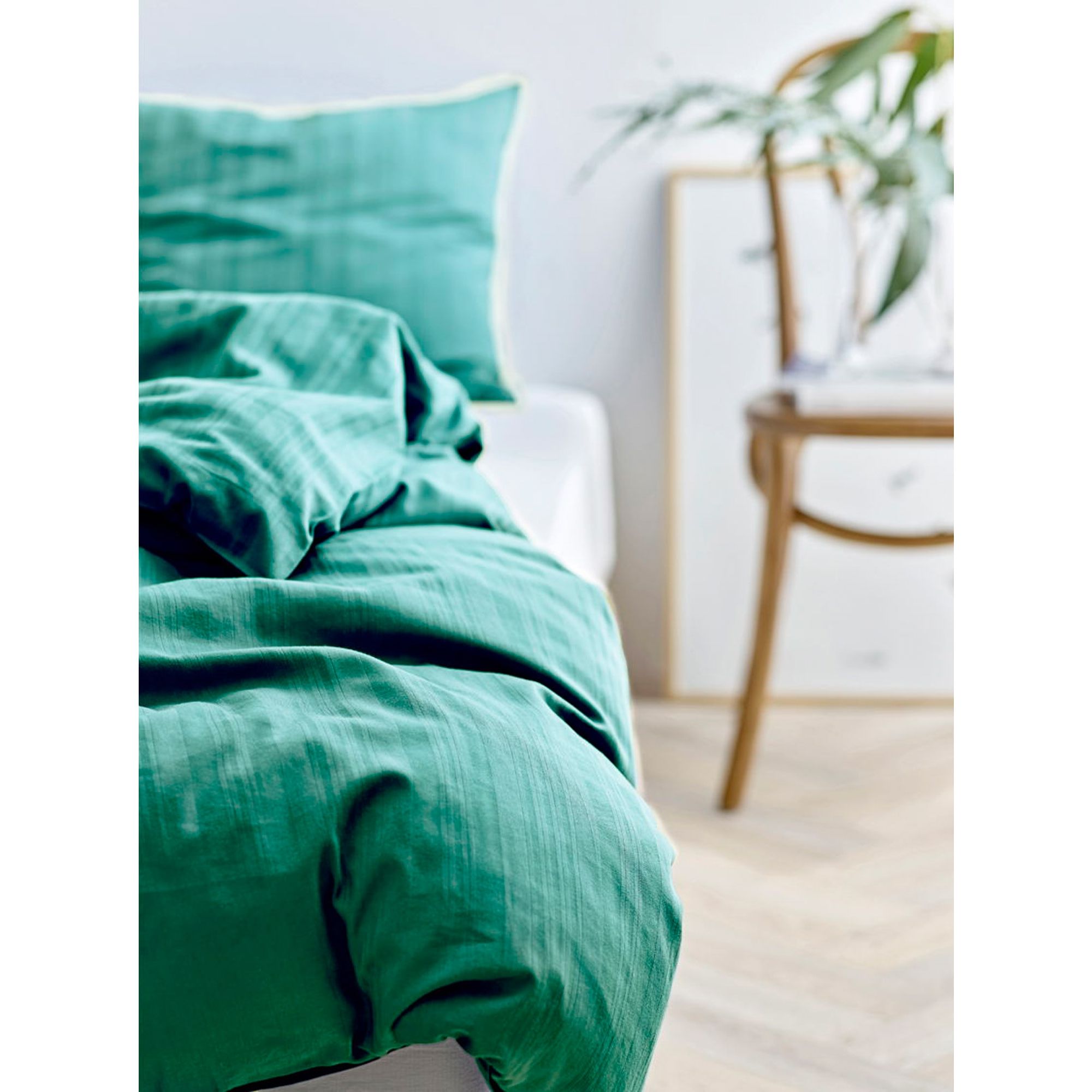 Drømmer du om ægte hotelstemning i soveværelset? Med dette luksuriøse damaskvævede sengetøj fra Södahl får du en kombination af elegant design, god komfort og høj kvalitet. Det stilrene stribede design i en smuk grøn farve giver et roligt og eksklusivt udtryk, der passer perfekt ind i det nordisk inspireret hjem.