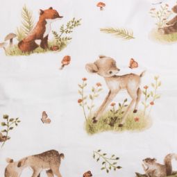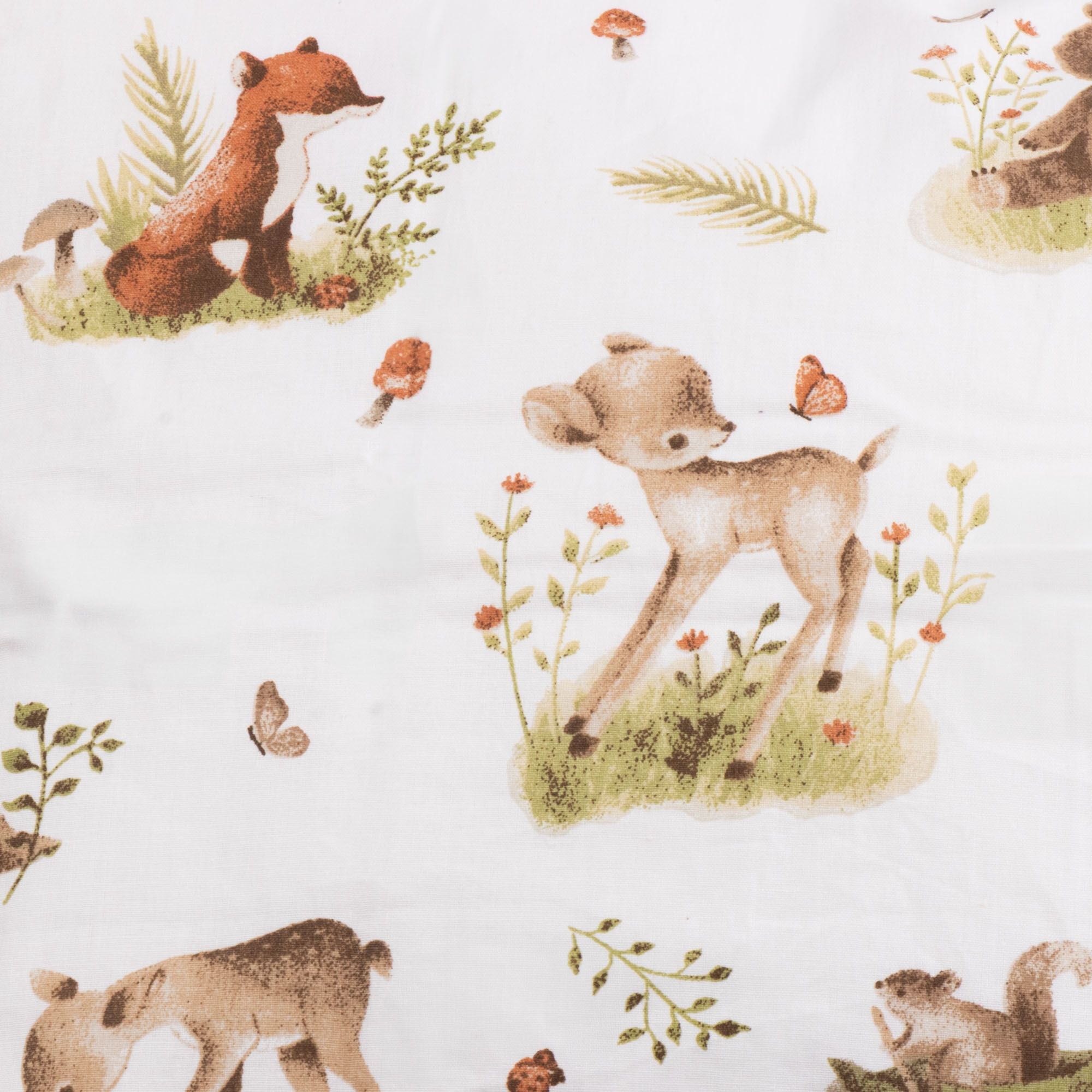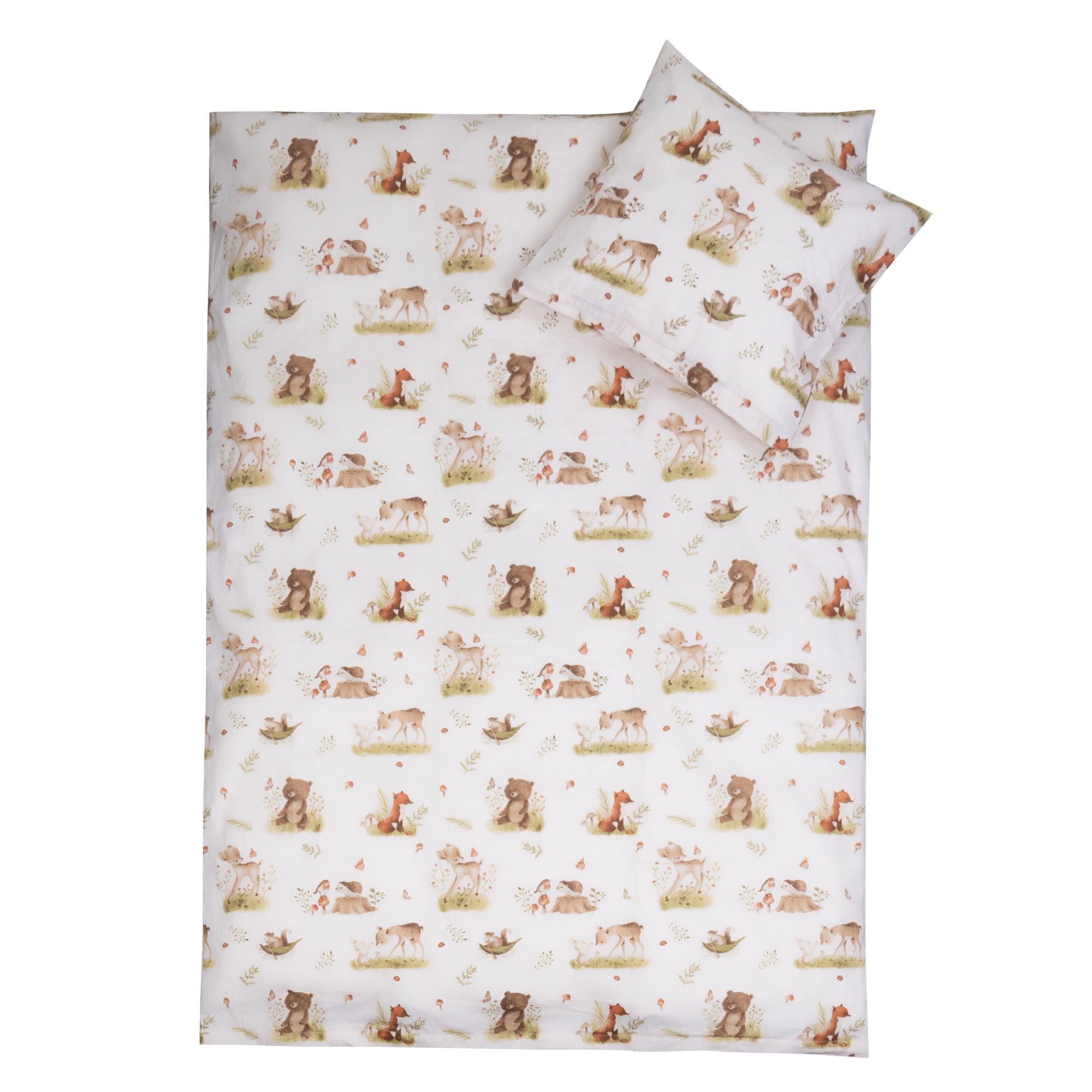 Junior sengesæt med dyr, som hjorte og bjørne produceret i 100% blød bomuld. Sengetøjet er i en høj kvalitet med god åndbarhed, slidstærk vævning og farveægte - som gør at det vil holde langt bedre på farverne. Det bløde junior sengelinned er perfekt til børn, da materialet er blødt bomuld og OEKO-TEX® certificeret, samt designet er roligt med fine og bløde farver. Sengetøjet er designet med et skønt motiv af små dyr. At junior sengesættet er OEKO-TEX® certificeret, betyder at det testet fri for skadelige stoffer, så dit barn trygt kan sove med det hver nat.