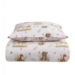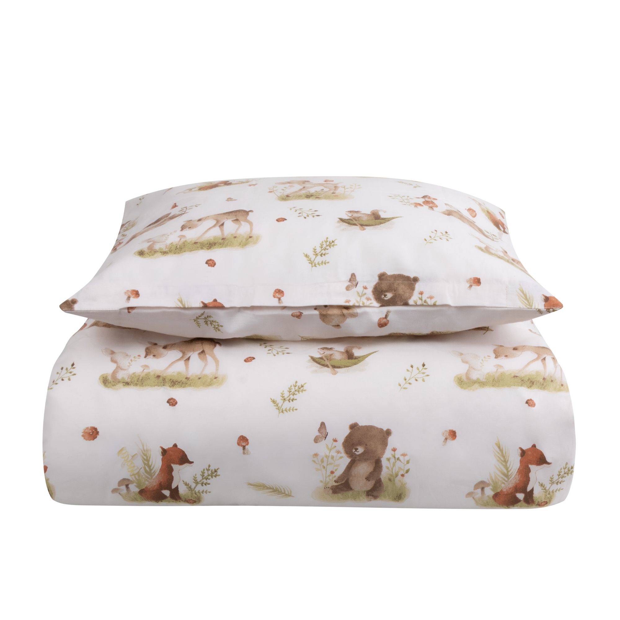 Blødt junior sengetøj i 100% bomuld, med et sødt design af dyr, som hjorte og bjørne i en rolig farve. Produceret med lette og åndbare bomuldsfibre giver en sengesættet en følelse af blødhed, der gør at dynen vil falde natuligt rundt om dit barn. Balancen i naturlig komfort fra det bløde materiale og det hyggelige dyre design, gør dette sæt til en sikker favorit hos dit barn.