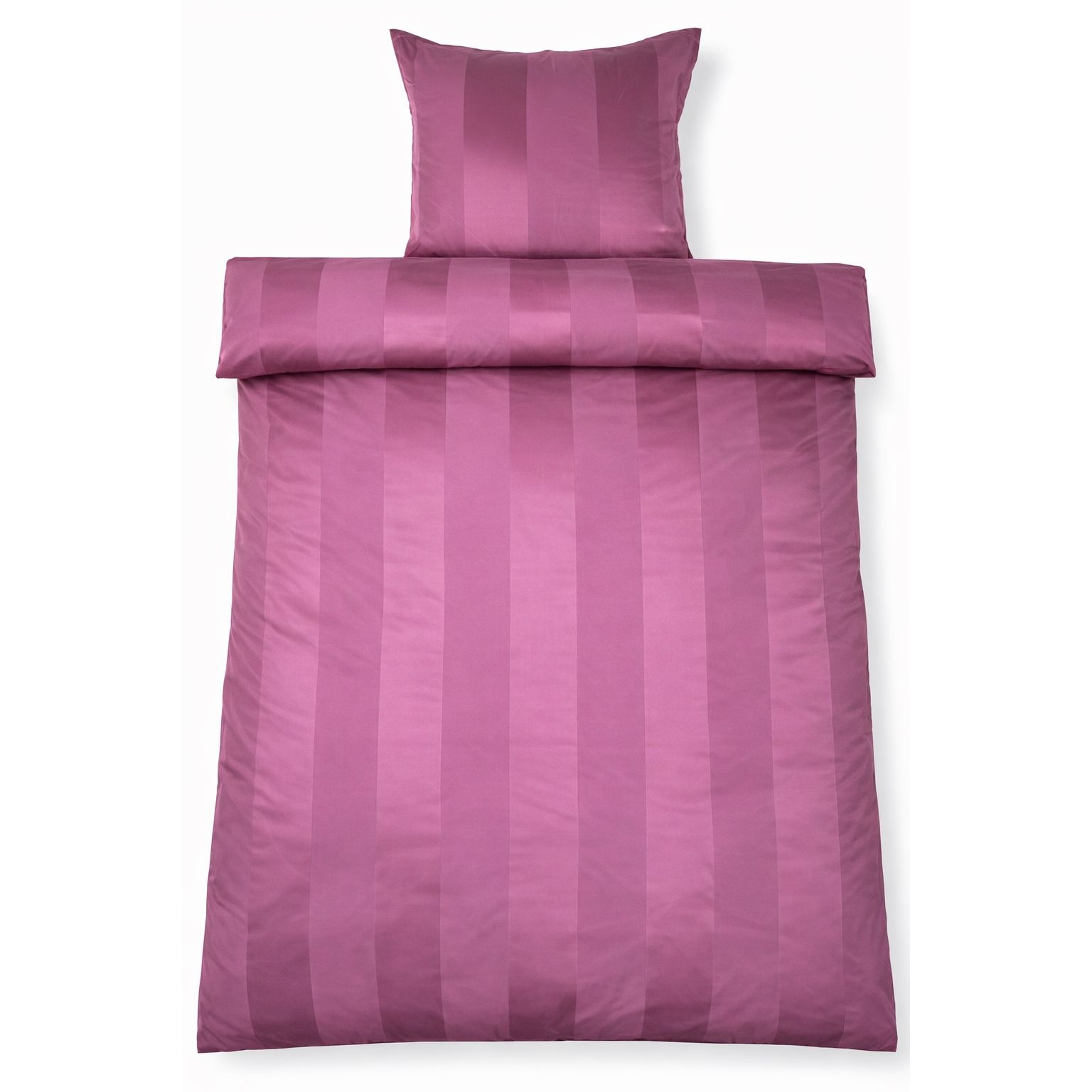 Sengetøj 140x200 cm - 100% bomuldssatin - Blommefarvet brede striber