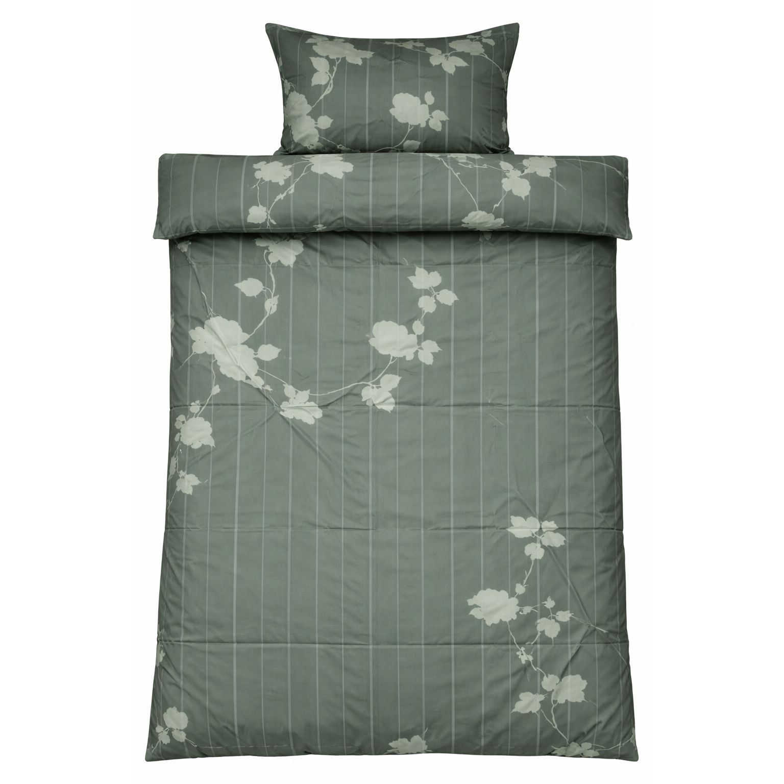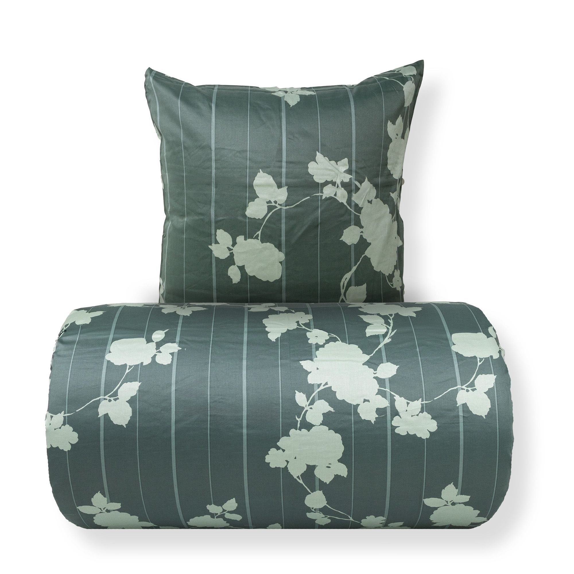 Sengetøj 140x200 cm - 100% bomuldssatin - Rosenbloom - Grønt blomstret og stribet print