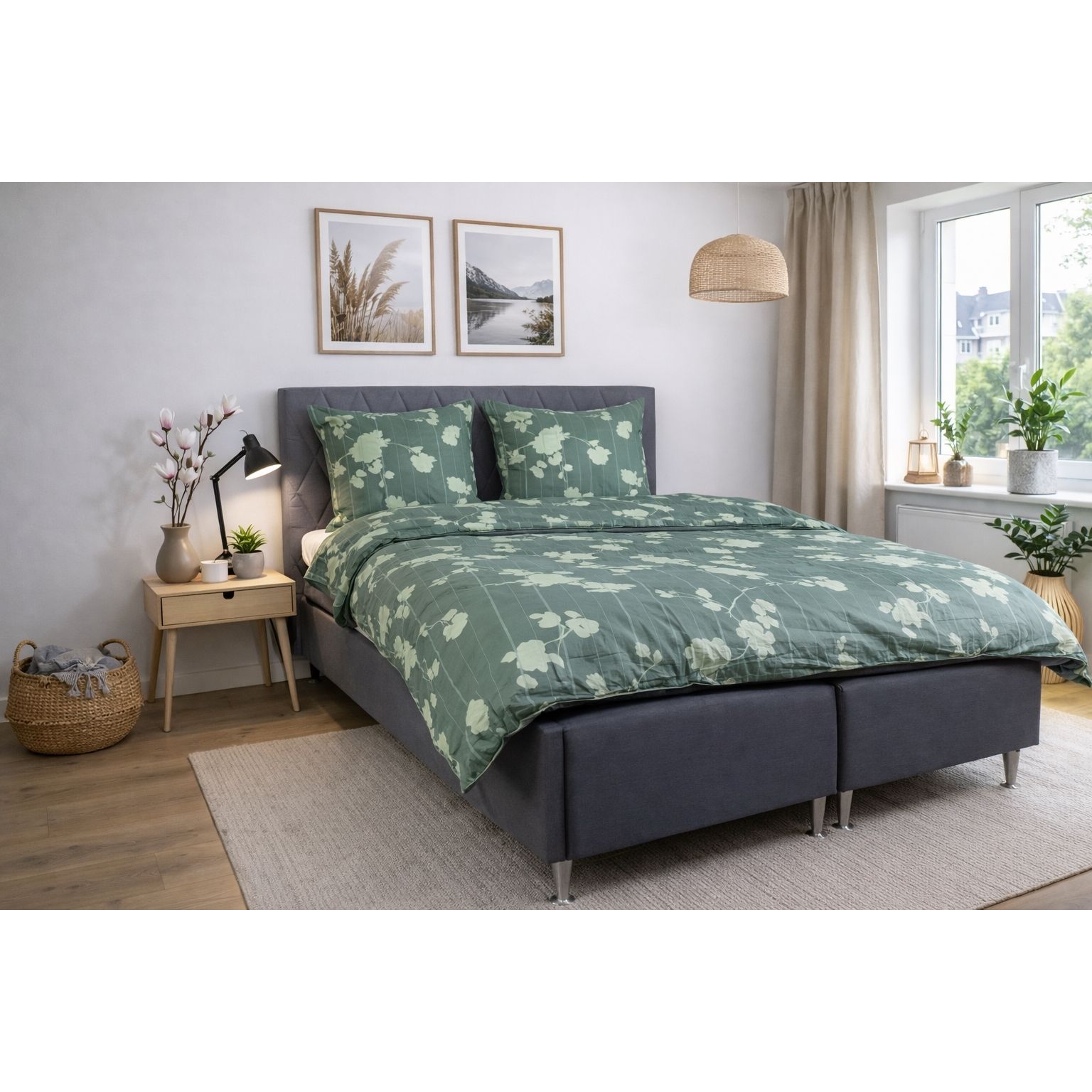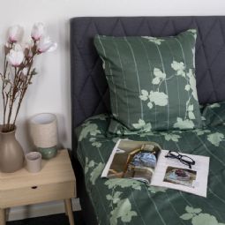 Skab et roligt og eksklusivt udtryk i soveværelset med dette blomstret luksus sengesæt i 100% bomuldssatin fra By Borg. Det stilfulde blomstret og stribet design i grøn giver et tidløst look, der passer perfekt ind i både moderne og klassiske soveværelser.