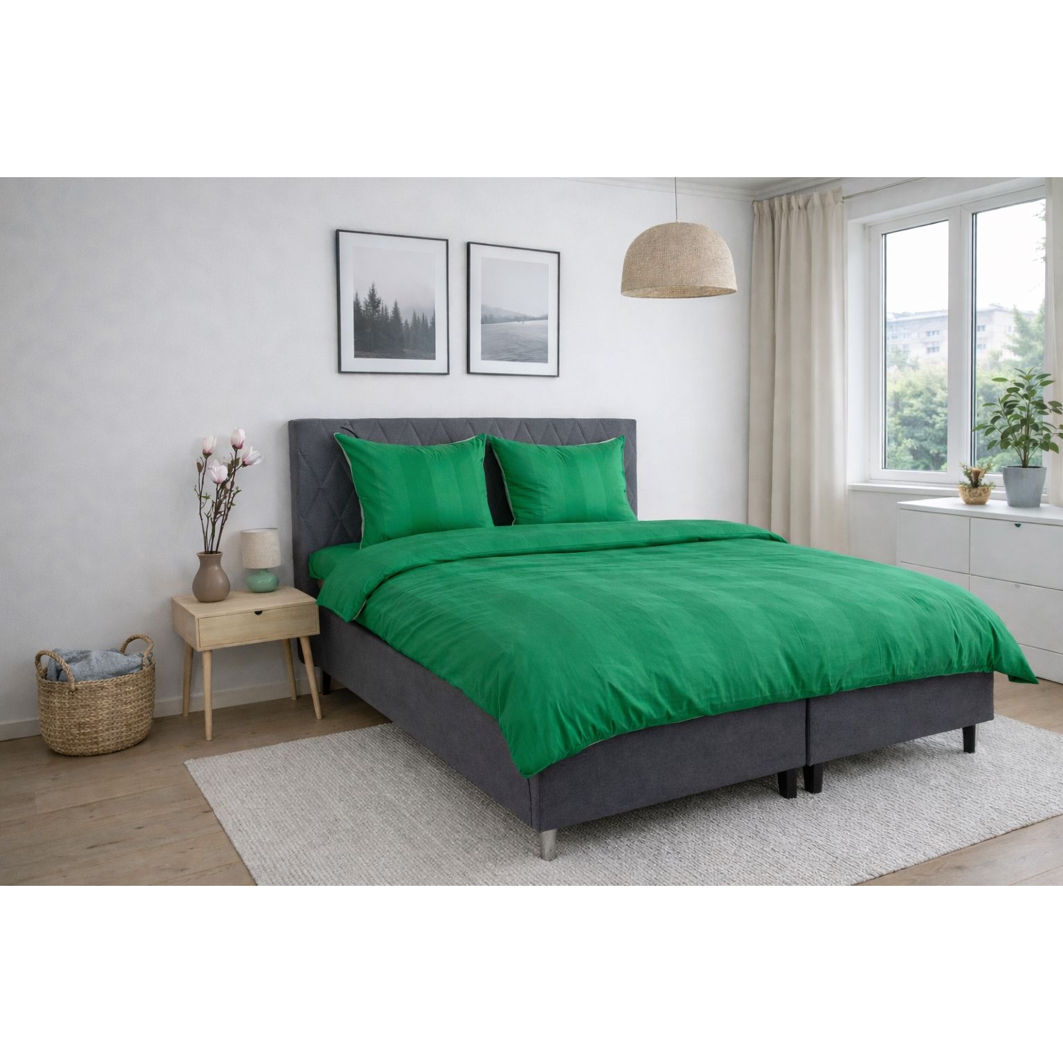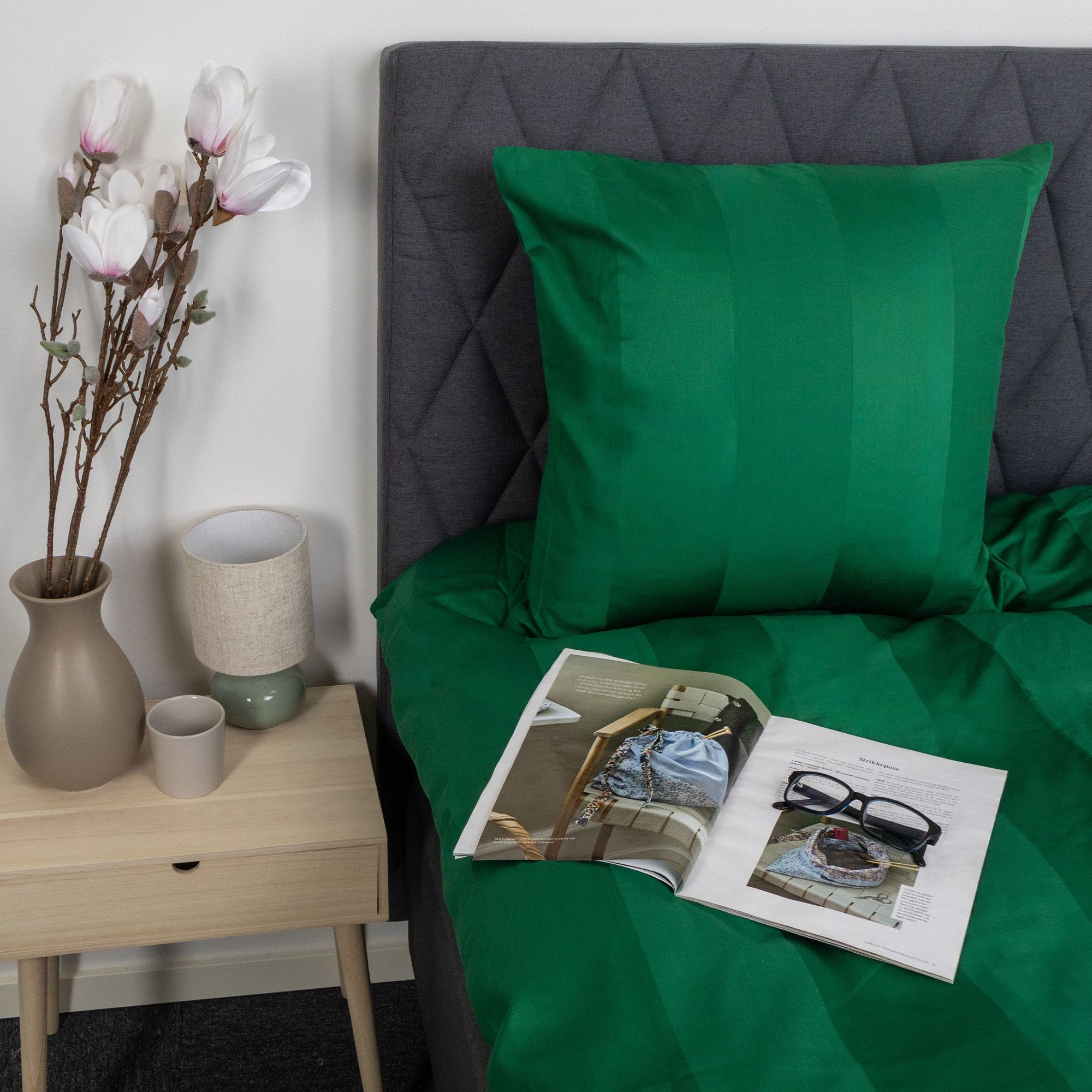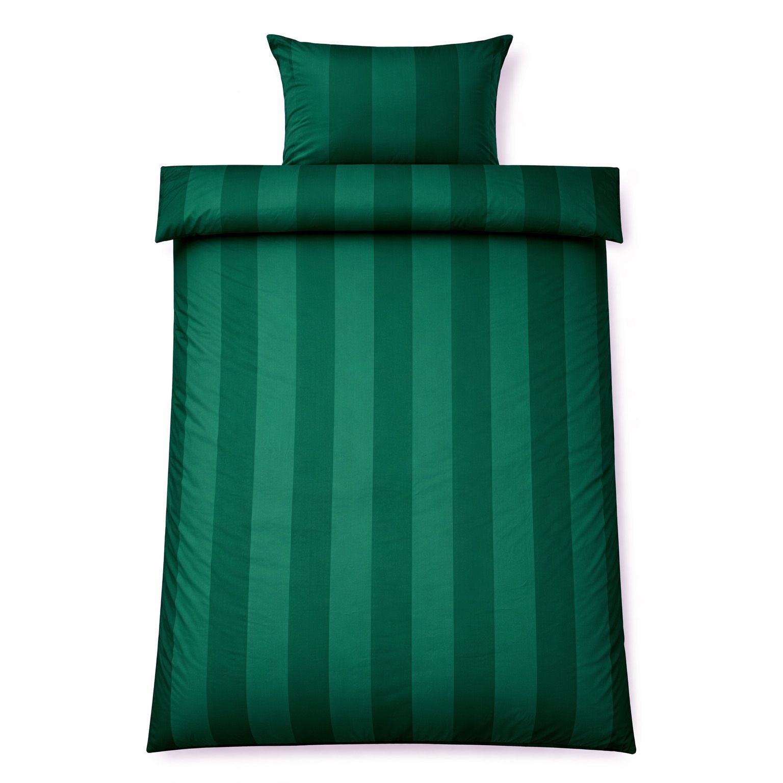 Sengetøj 140x200 cm - 100% bomuldssatin - Lone - Grønne jacquardvævet striber