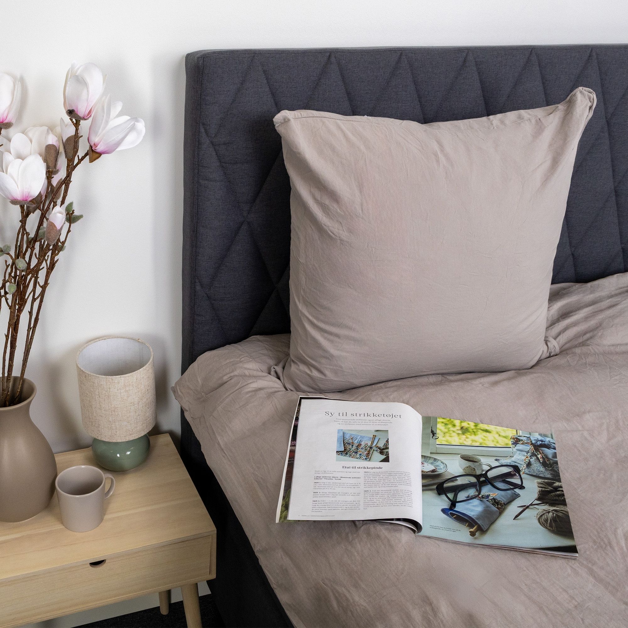 Dyne- og pudebetræk er lukkes med indvendig skjult lynlås, som giver et stilrent udtryk og gør det nemt at skifte sengetøj. Den grå nuance og det ensfarvede design gør sengesættet let at kombinere med både lyse og mørke elementer i soveværelset.