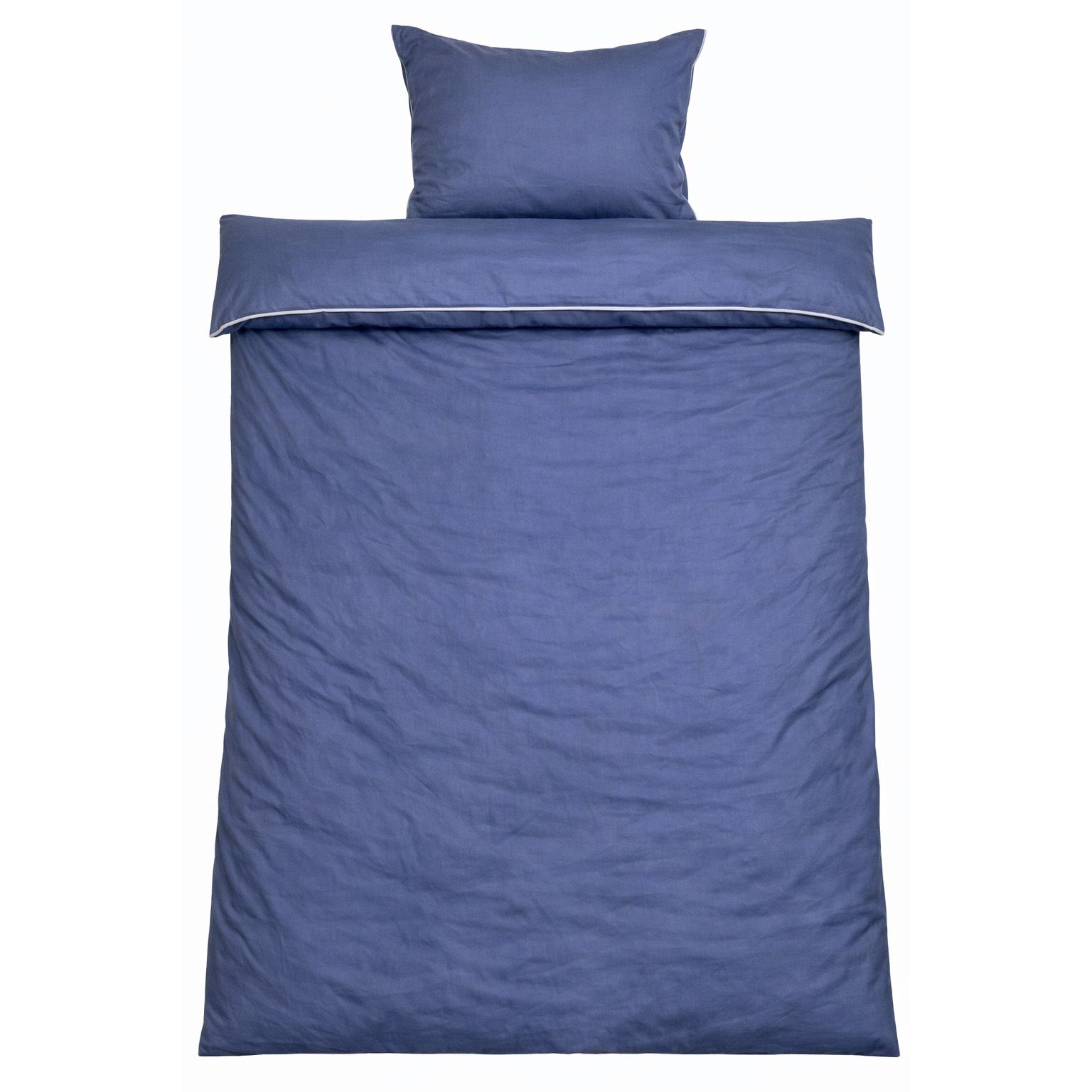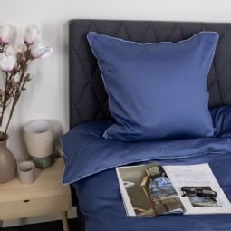 Skab et elegant og luksuriøst udtryk i soveværelset med dette eksklusive sengesæt i 100% bomuldssatin med dekorativ pipingkant fra By Borg. Det ensfarvede design i dyb blå kombineret med en lysere pipingkant tilfører et stilrent og sofistikeret look, der løfter helhedsindtrykket i soveværelset.