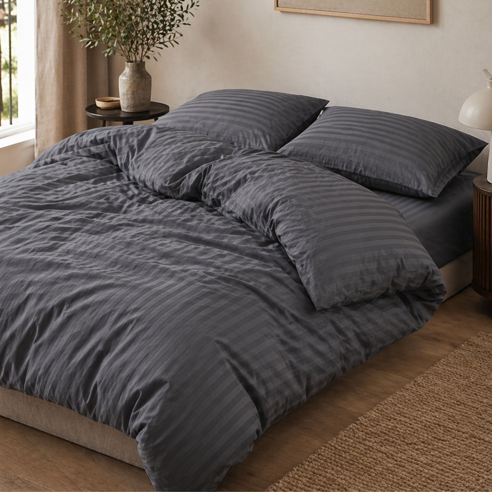 Sengetøjet er fremstillet i 100% bomuldssatin med en ekstra fin 220TC satinvævning, som giver en utrolig blød og glat overflade med en diskret glans. Den høje kvalitet sikrer en behagelig og luksuriøs søvnoplevelse, hvor komfort og æstetik går hånd i hånd. En stor fordel ved bomuldssatin er holdbarheden. Stoffet er tæt vævet og stærkt, hvilket gør sengetøjet modstandsdygtigt over for slid og gentagne vaske. Samtidig bliver det faktisk ofte endnu blødere med tiden, uden at det gør noget ved formen eller kvaliteten. Det gør bomuldssatin til et godt og praktisk valg, da det kombinerer luksus med hverdagsfunktionalitet.