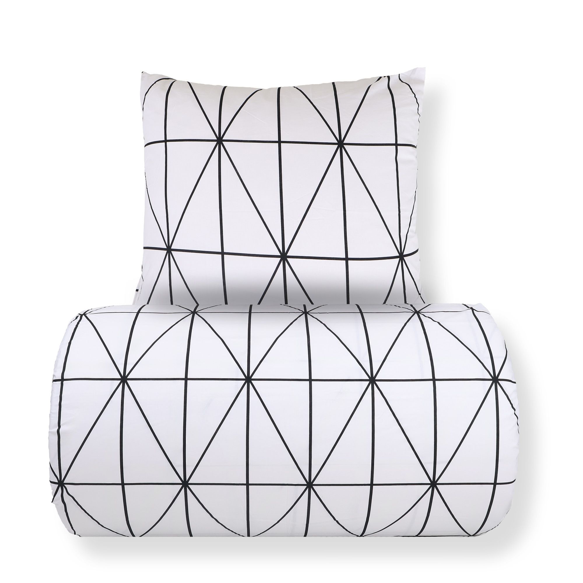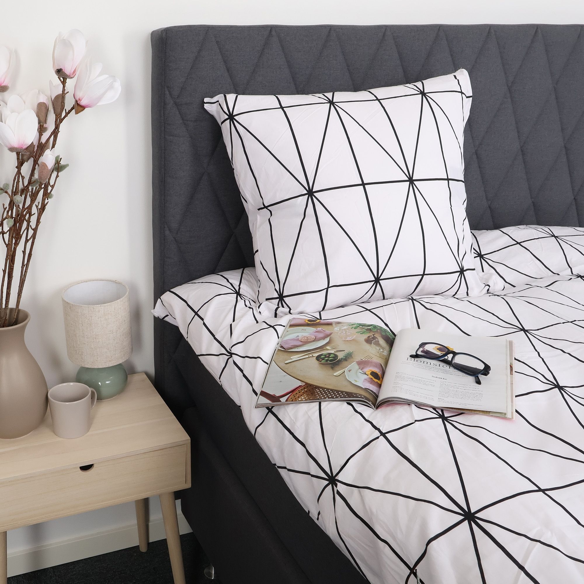Sengetøj 140x220 cm - 100% bomuld - Hvidt med sorte harlekintern