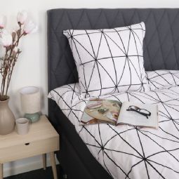 Både dynebetræk og pudebetræk lukkes med praktisk lynlås, så sengesættet ligger pænt hele natten.