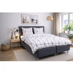Sengetøj - 100% bomuld - Gråt med hvide harlekintern Sengetøj - 100% bomuld - Gråt med hvide harlekintern